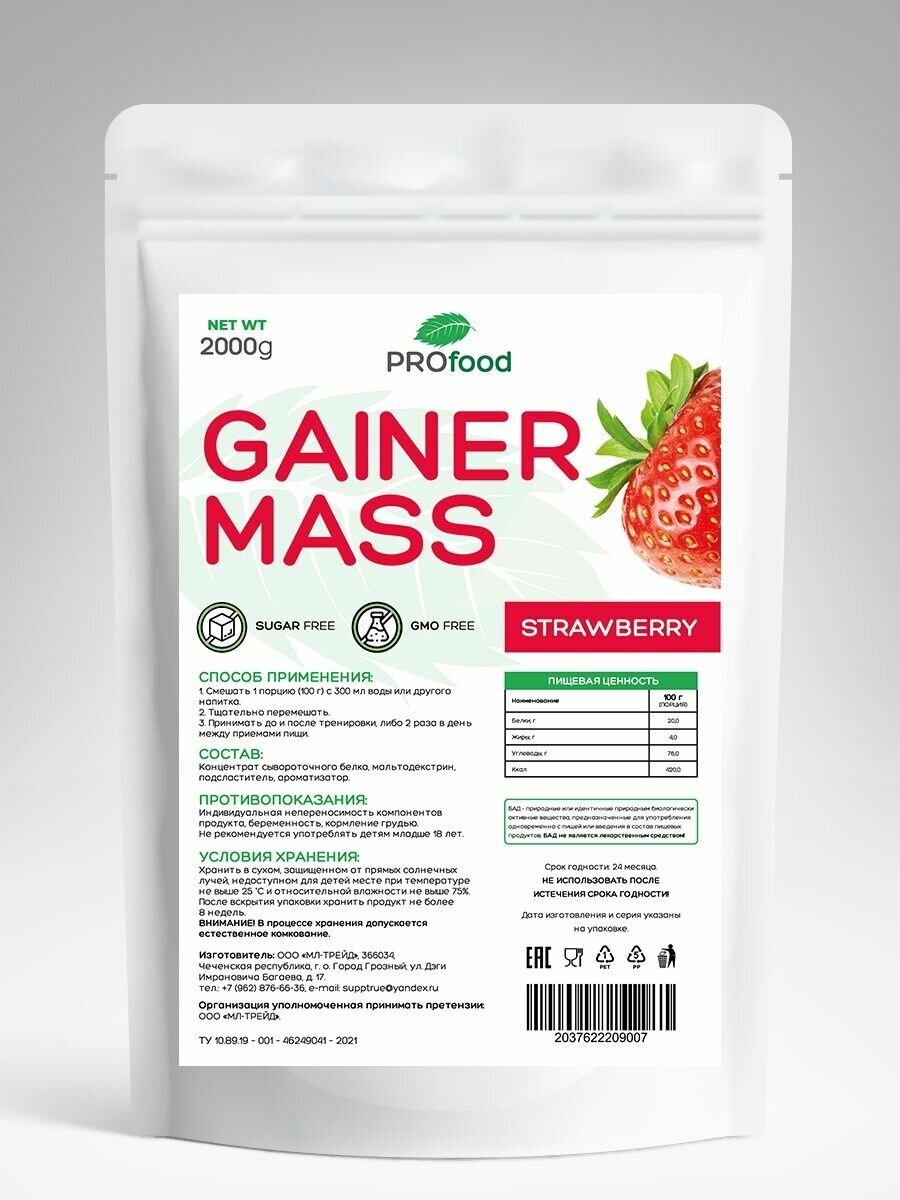 Pro Food Гейнер высокоуглеводный со вкусом Клубника 2000г интересное: