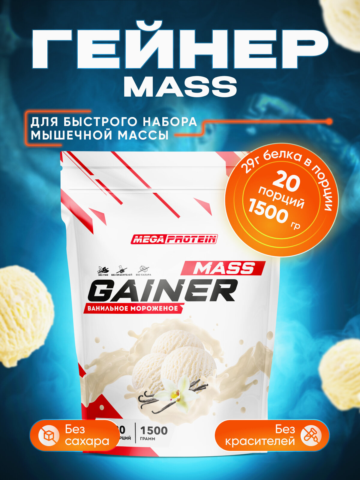 Гейнер для набора массы / Высокобелковый гейнер Mass Gainer Megaprotein, Мороженое / 1500 гр, 20 порций