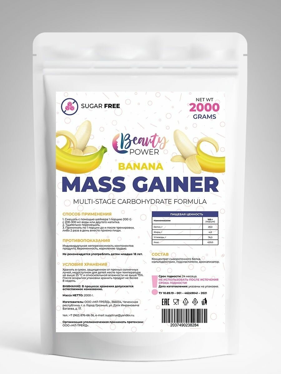 Купить Beauty Power Гейнер высокоуглеводный со вкусом Банан 2000г