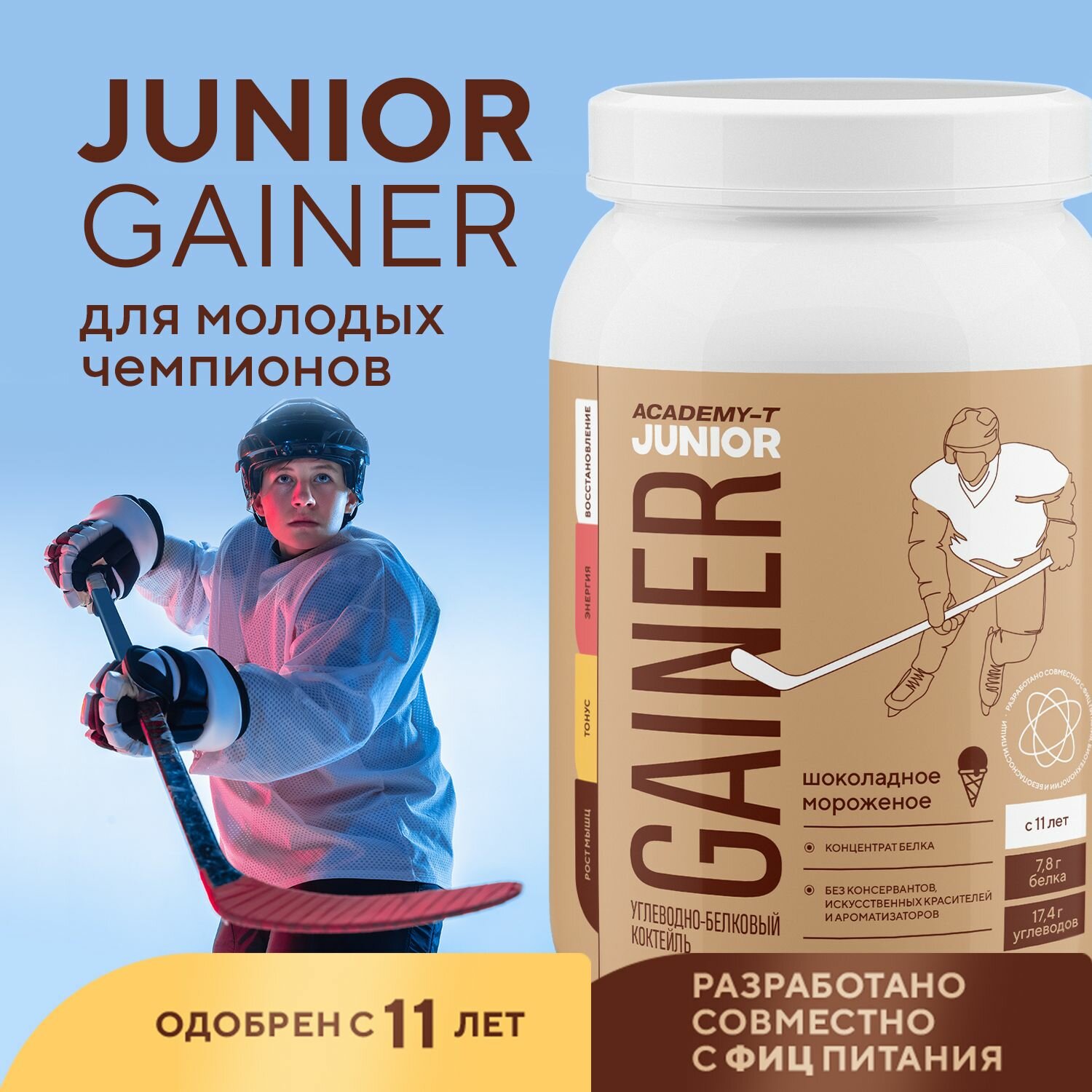 Купить Junior Gainer (Юниор Гейнер) академия-т 900 гр Шоколадное мороженое