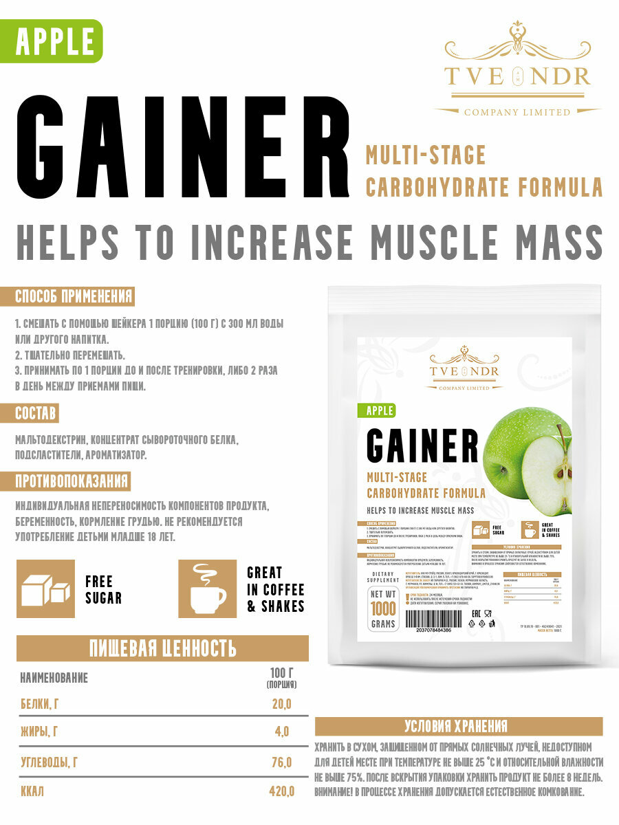 Купить Гейнер от TVENDR Compani Limited со вскусом яблоко