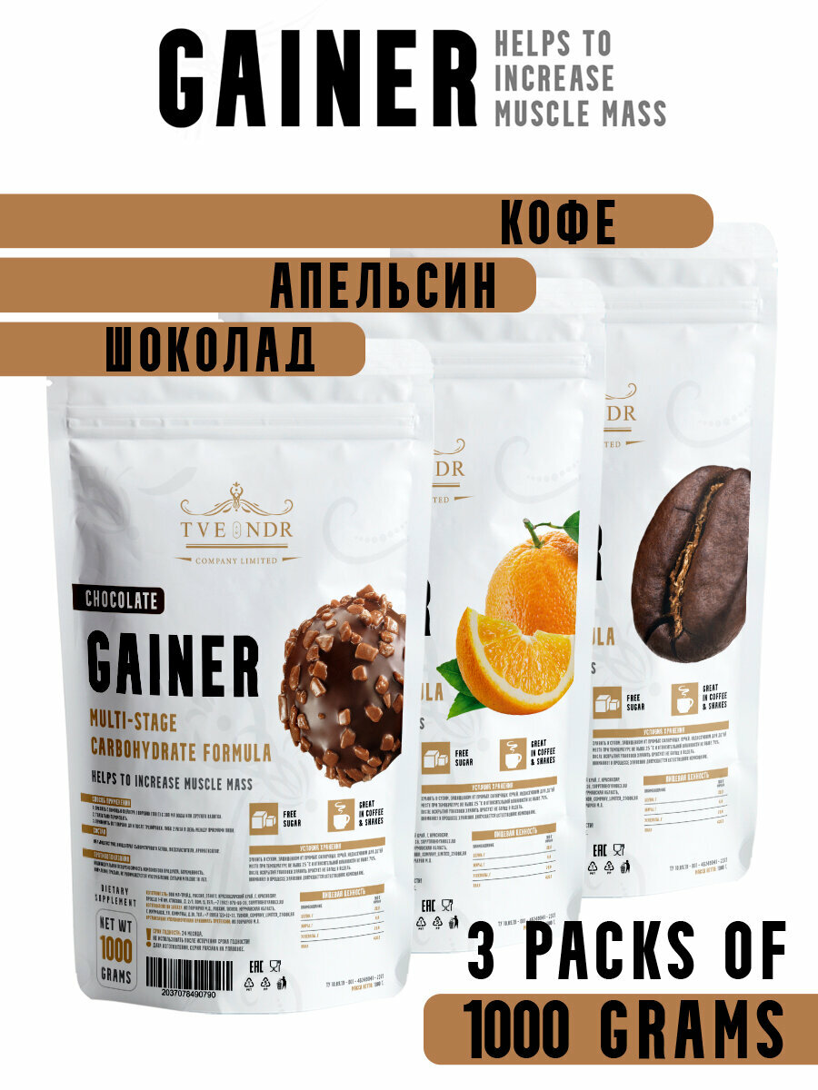 Купить Набор гейнера от TVENDR Compani Limited из 3-ёх вкусов шоколад, апельсин, кофе