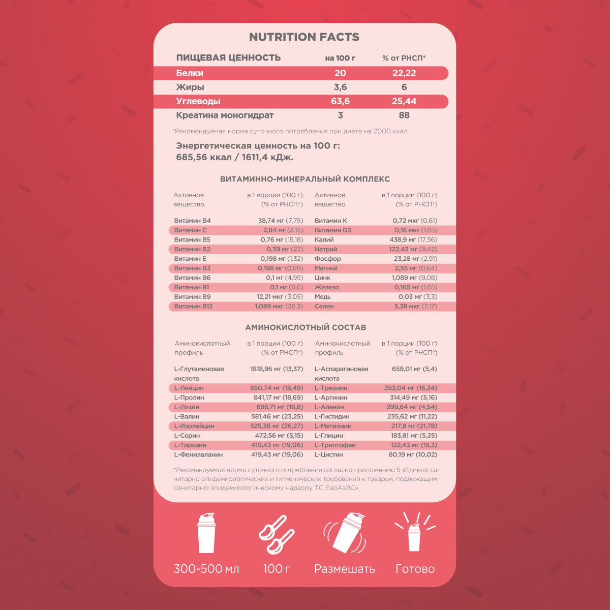 | Диетические особенности | креатин,витамины,аминокислоты |