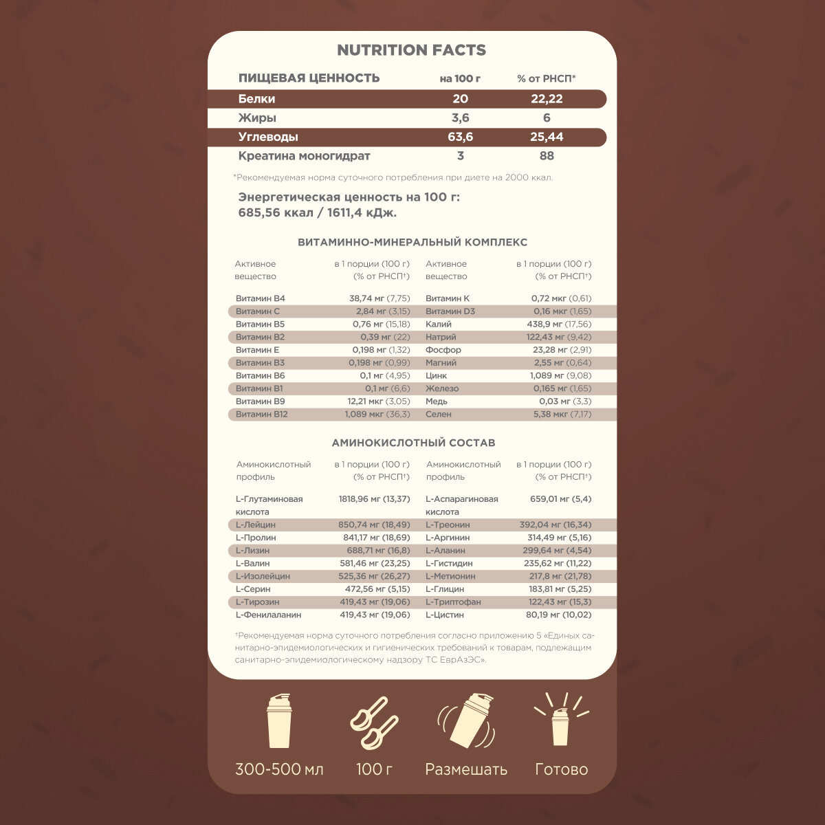 | Диетические особенности | креатин,витамины,аминокислоты |