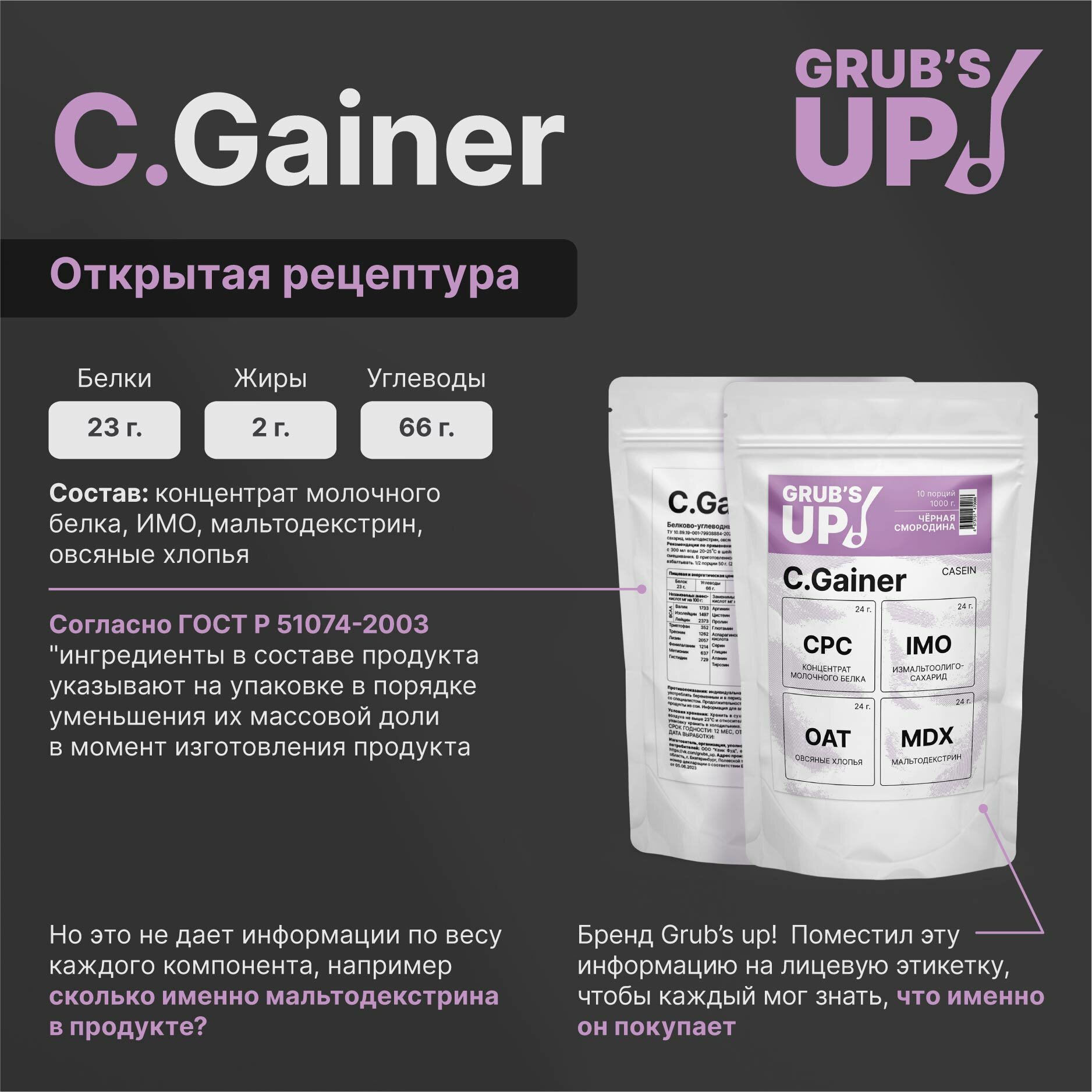 Белково-углеводный коктейль (гейнер) C.Gainer черная смородина 100гр интересное: