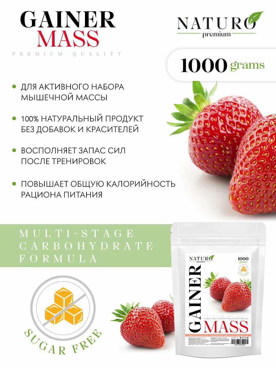 NATURO Premium Гейнер высокоуглеводный со вкусом Клубника 1000г