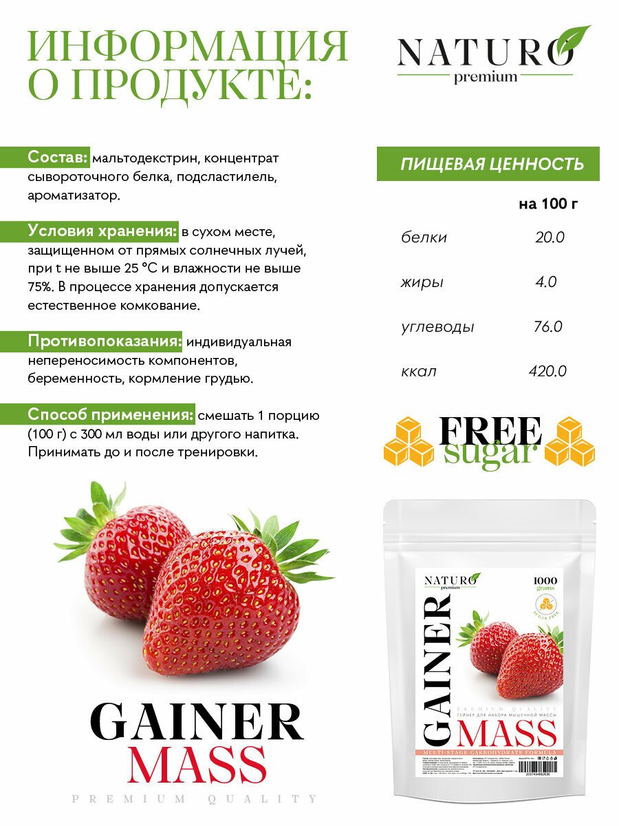 Купить Гейнер от NATURO Premium со вскусом клубники