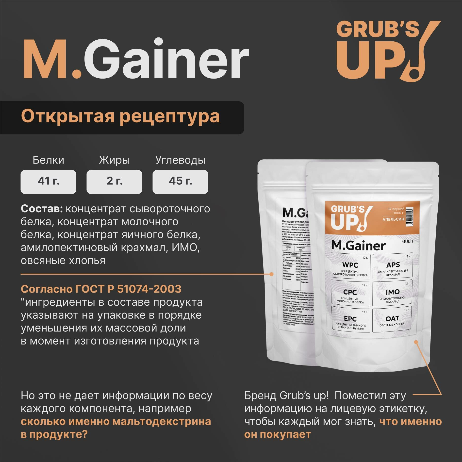 Белково-углеводный коктейль (гейнер) Grub's up! M.Gainer апельсин 72гр