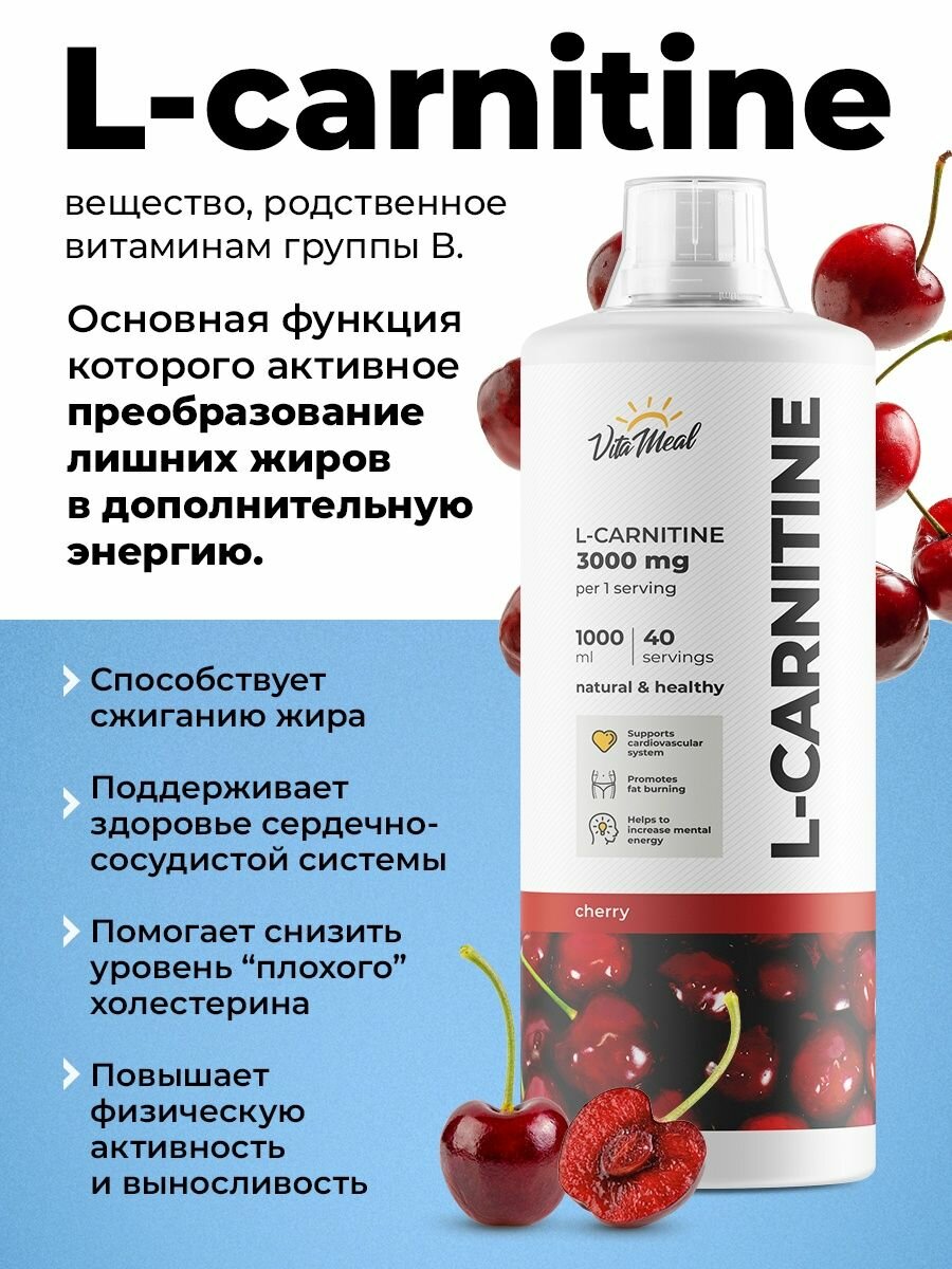 Л-карнитин жидкий VitaMeal L-Carnitine 3000 mg / Жиросжигатель, 1000 мл, Вишня