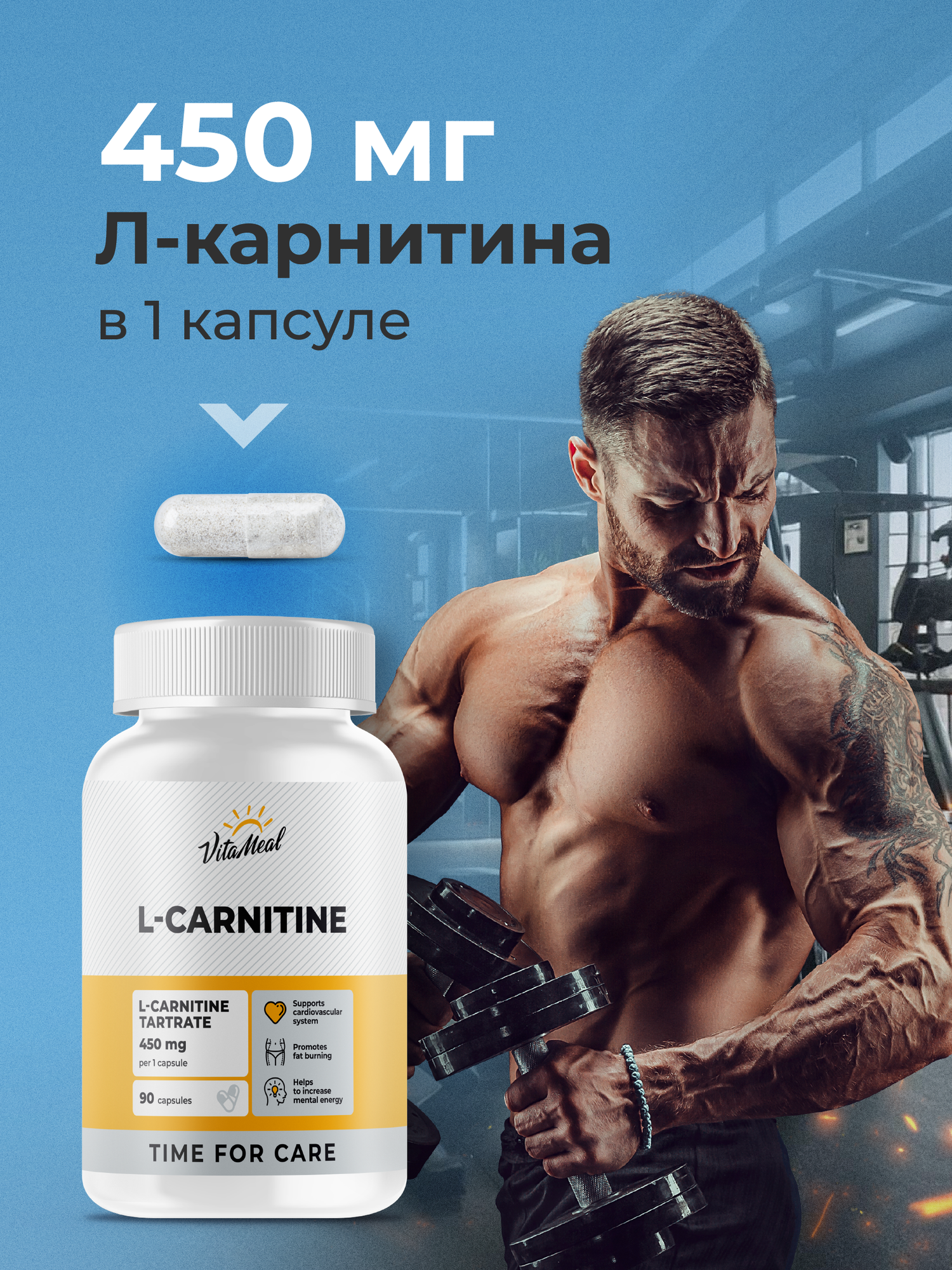 Л-карнитин VitaMeal L-Carnitine tartrate 450 mg / тартрат / Жиросжигатель, 90 капсул интересное: