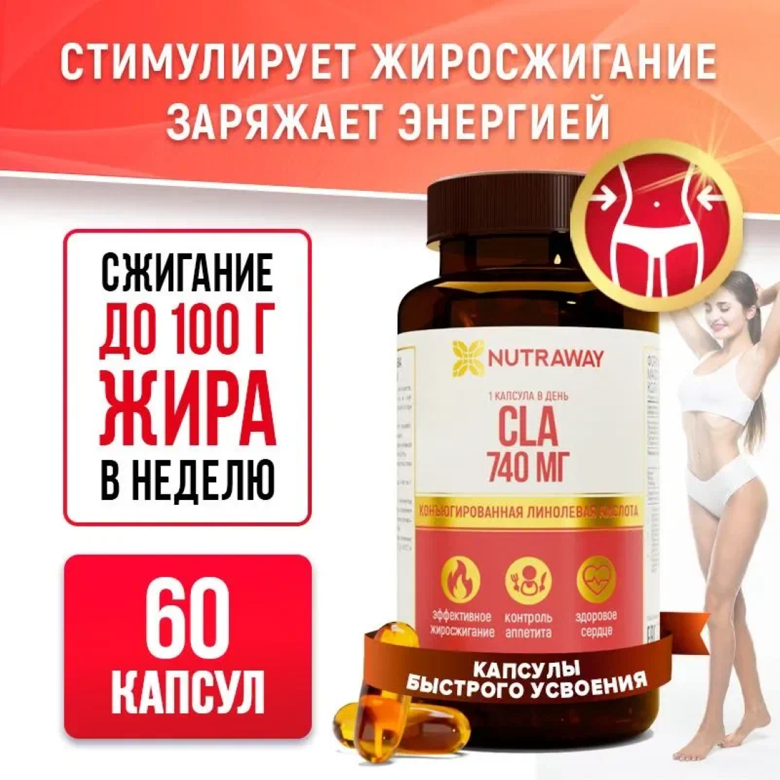 Пищевая добавка CLА / Линолевая кислота Nutraway 60 капсул быстрого усвоения интересное: