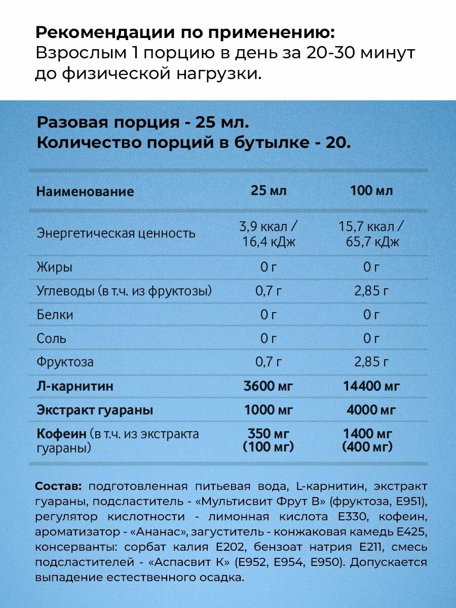 СохранитьЛ-карнитин с гуараной VitaMeal L-Carnitine Attack 3600 mg / Жиросжигатель с гуараной, 500 мл, Ананас интересное: