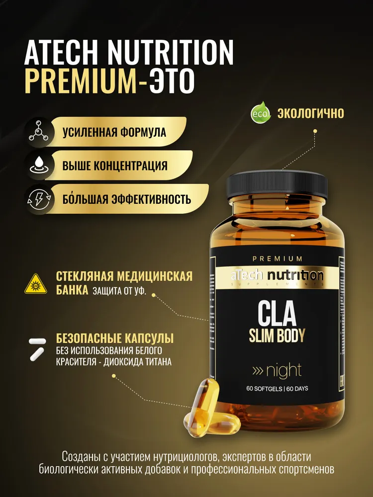 Набор жиросжигателей: CLA + L-carnitine (конъюгированная линолевая кислота и л карнитин) aTech nutrition PREMIUM 2 упаковки по 60 капсул интересное: