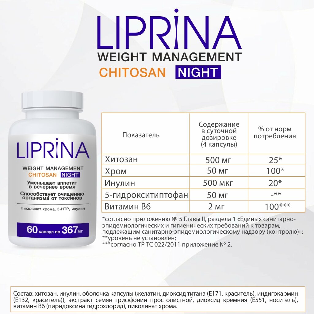 Липрина управление весом хитозан Ночь Жиросжигатель Для похудения интересное: