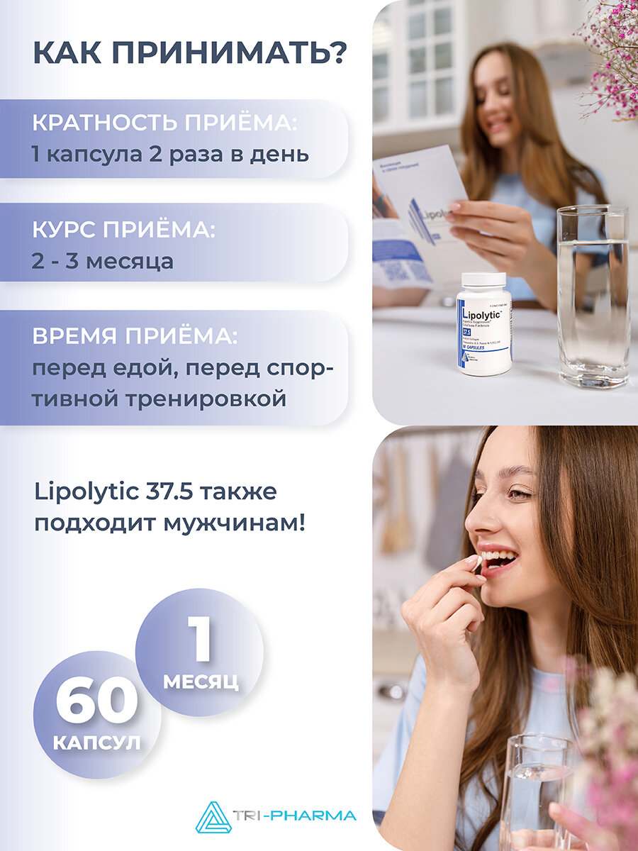 Lipolytic 37.5 косметический жиросжигатель для женщин и мужчин, БАД для снижения веса, таблетки для похудения, 60 капсул интересное: