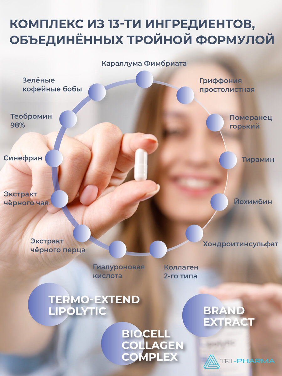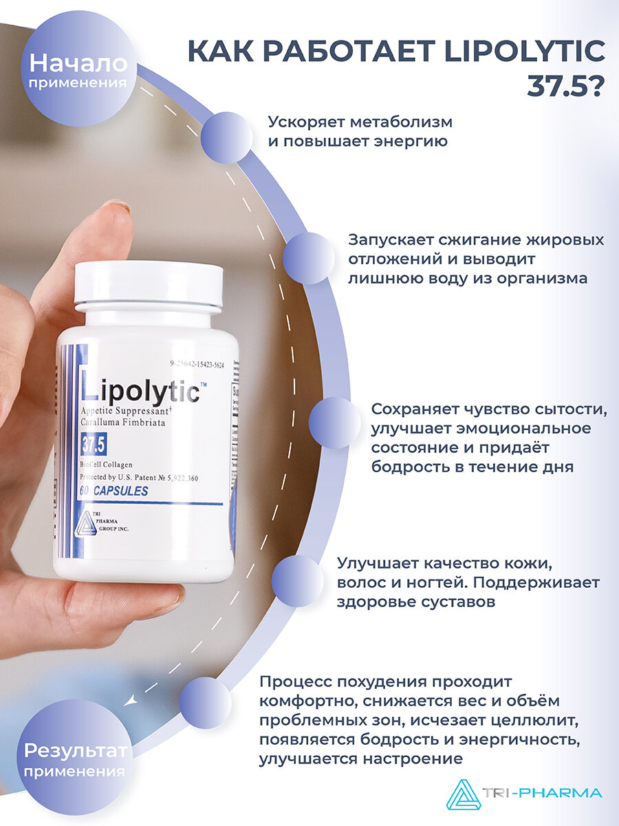 Lipolytic 37.5 косметический жиросжигатель для женщин и мужчин, БАД для снижения веса, таблетки для похудения, 60 капсул