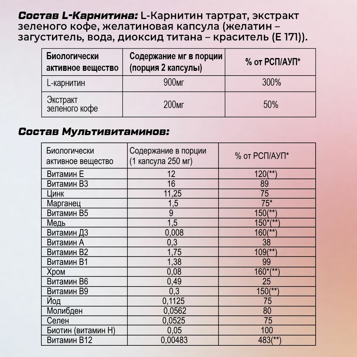 | Форма выпуска | капсулы/таблетки |