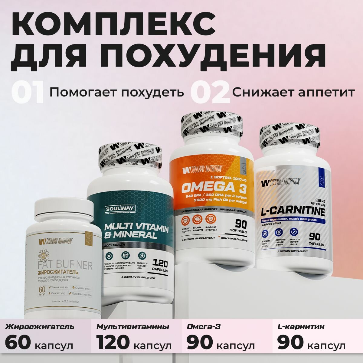 Комплекс для похудения / L - carnitine, Омега - 3, Мультивитамины, Жиросжигатель / капсулы интересное: