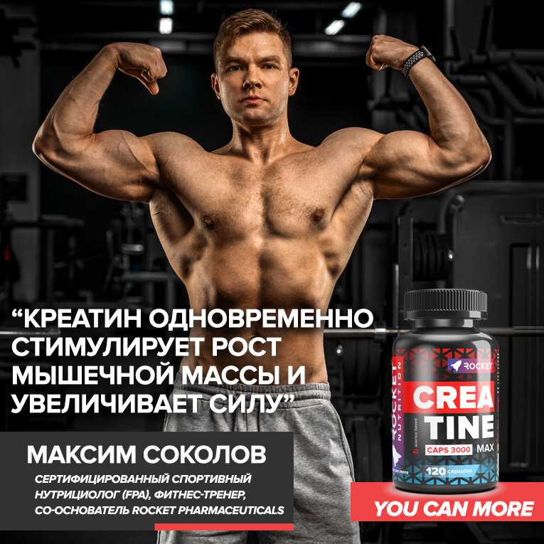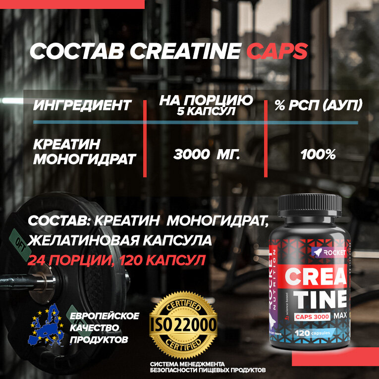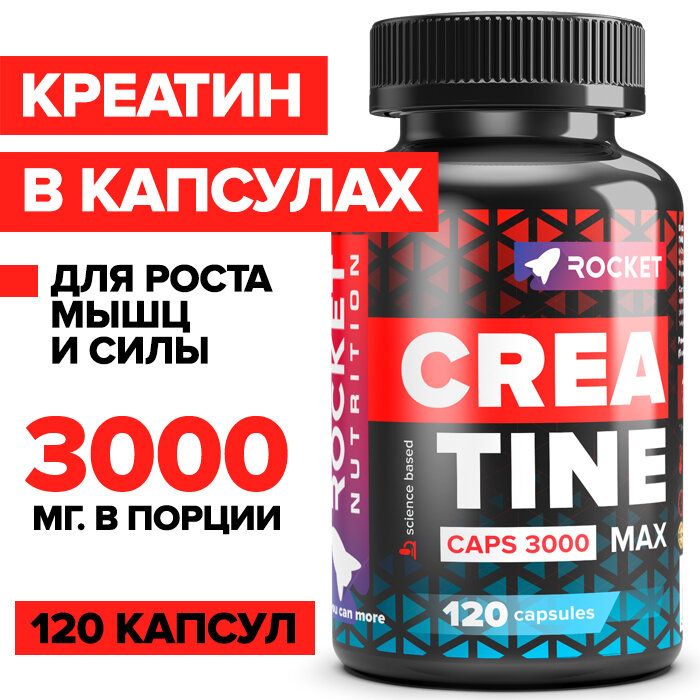 Креатин Моногидрат 100% в капсулах, 120 капсул, Creatine для роста мышц и силы, ROCKET Pharmaceuticals интересное: