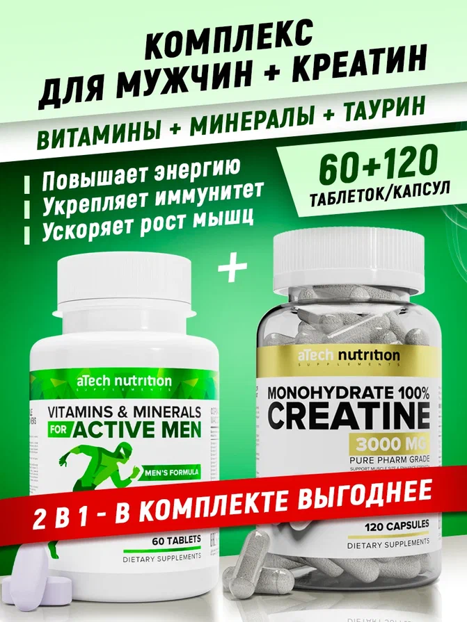 Набор Креатин Моногидрат+ Мультивитамины для мужчин aTech nutrition капсулы/таблетки интересное: