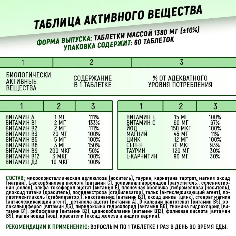 | Форма выпуска | капсулы/таблетки |
