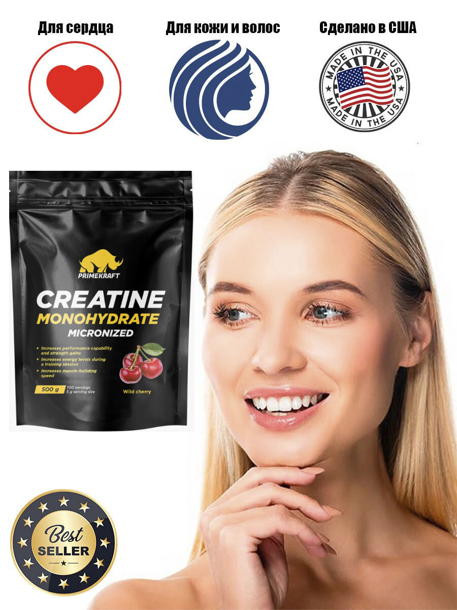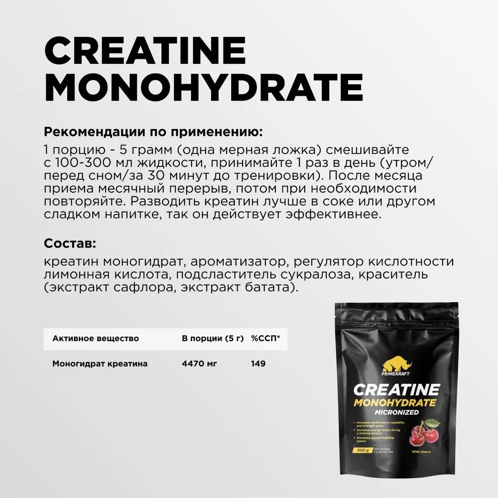 Купить Креатин Моногидрат PRIMEKRAFT Creatine Monohydrate Micronized, со вкусом wild cherry (дикая вишня), 500 гр / 100 порций