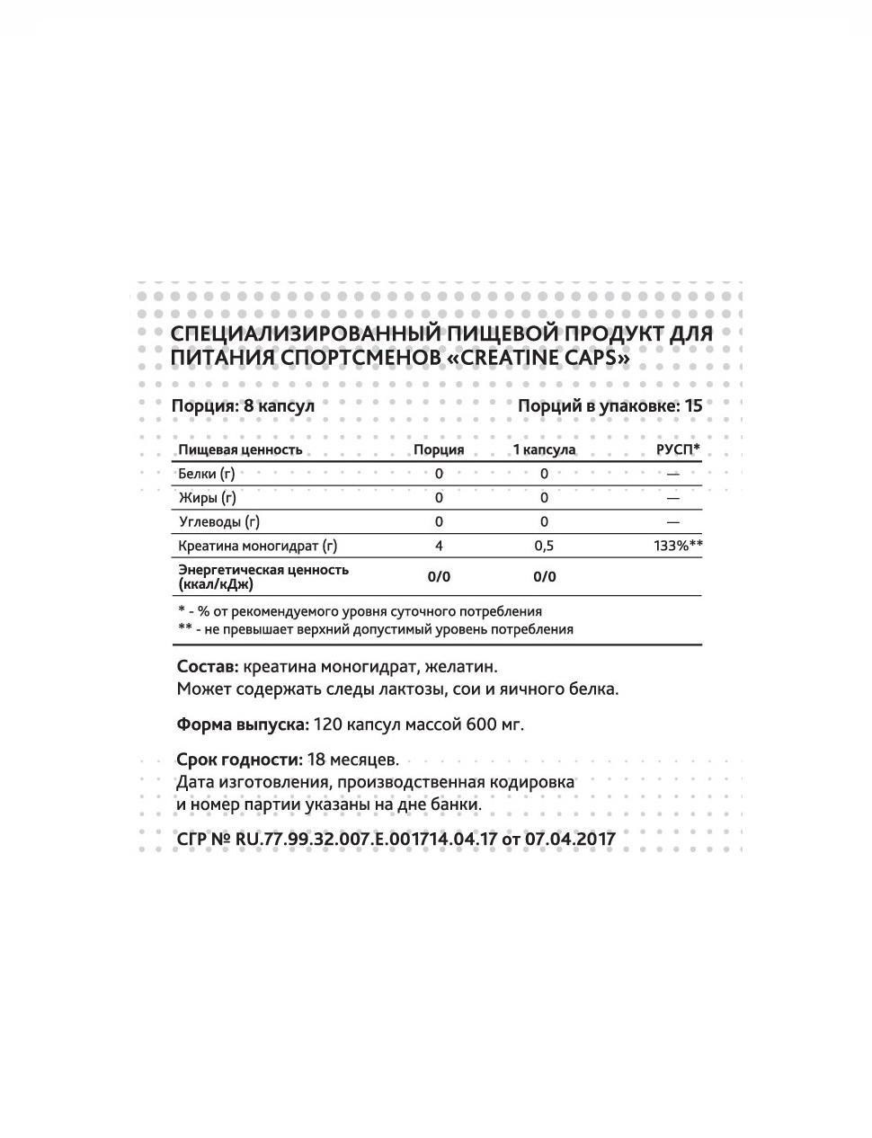 | Форма креатина | креатин моногидрат |