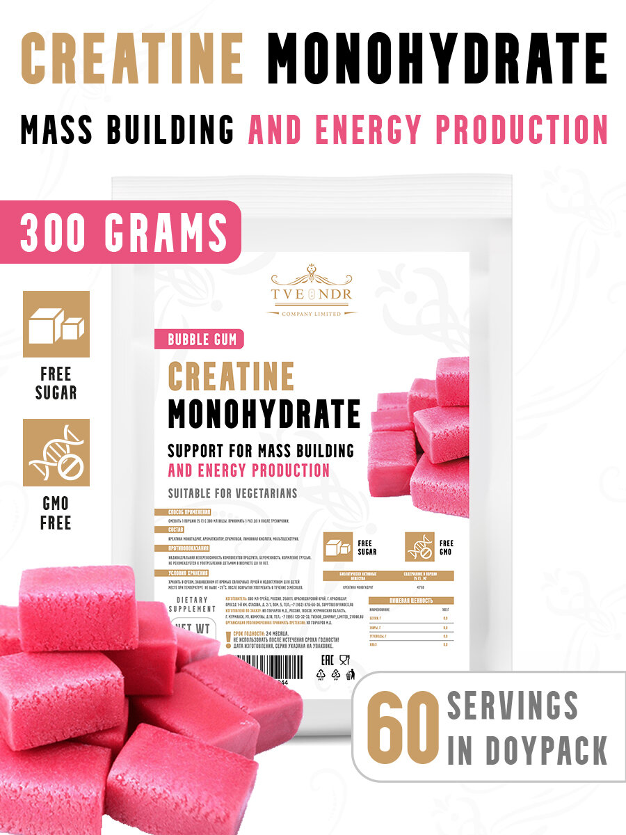 Креатин моногидрат 300гр. бабл-гам интересное: