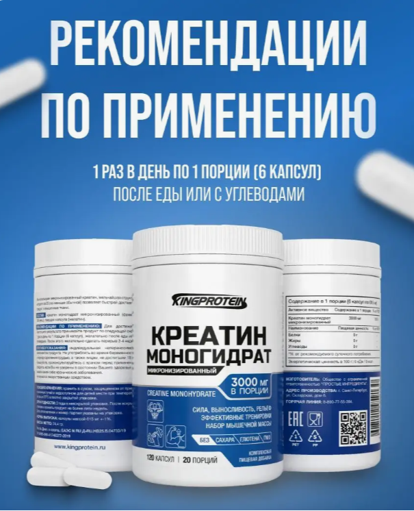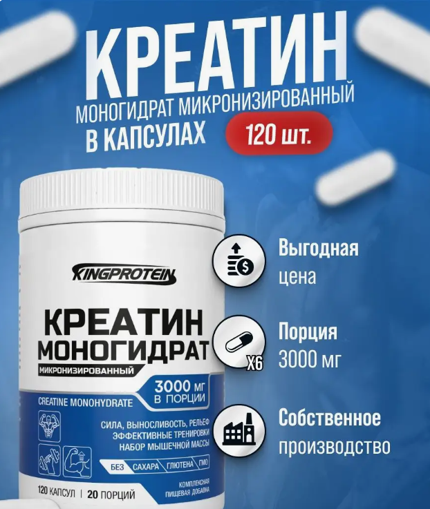 Креатин моногидрат KingProtein, 120 капсул интересное: