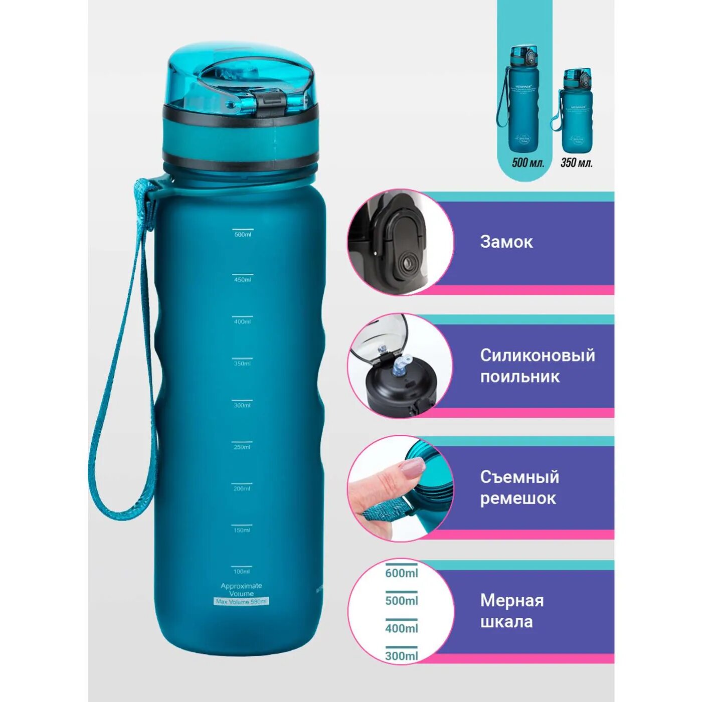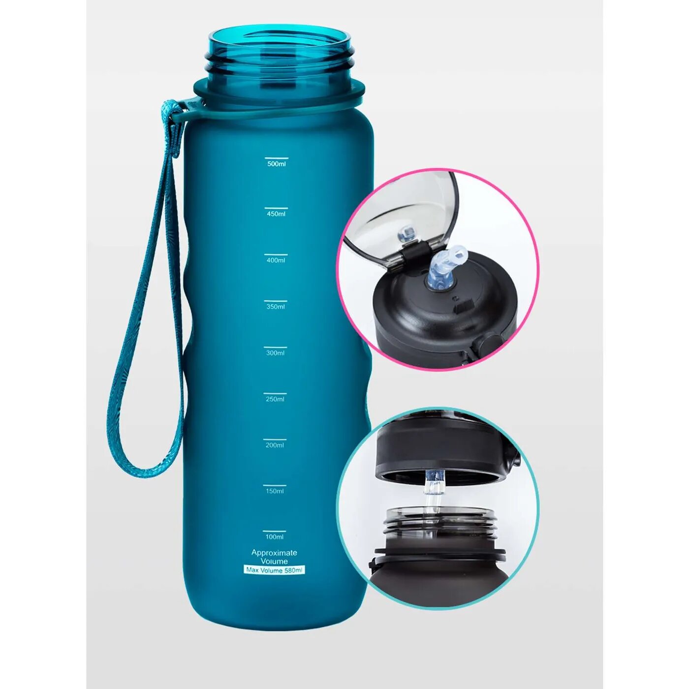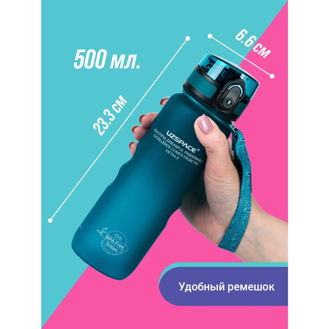 Бутылка для воды спортивная UZSPACE - из Тритана, с трубочкой, бирюзовая, 500 мл, с герметичной крышкой, BPA Free, для спорта и фитнеса, детская в школу