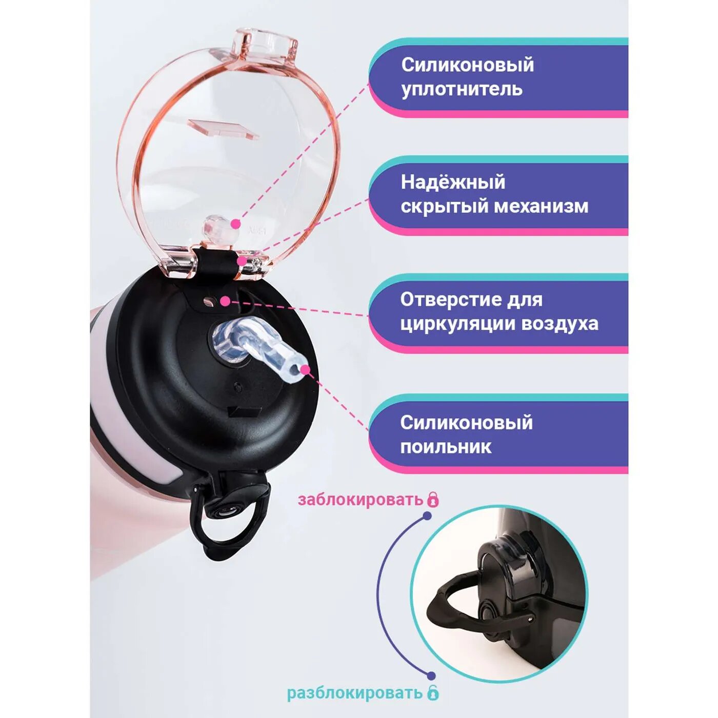 Бутылка для воды спортивная UZSPACE - из Тритана, с трубочкой, светло-розовая, 500 мл, с герметичной крышкой, BPA Free, для спорта и фитнеса, детская в школу