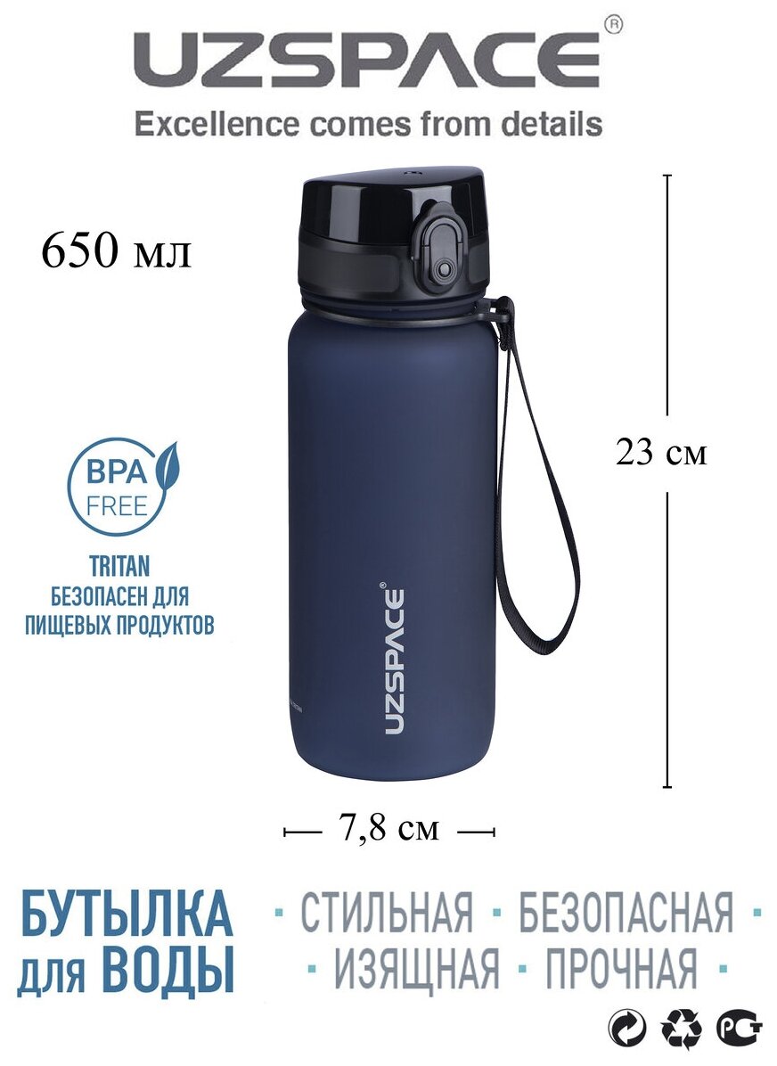 Бутылка для воды спортивная UZSPACE Colorful Frosted 650 мл