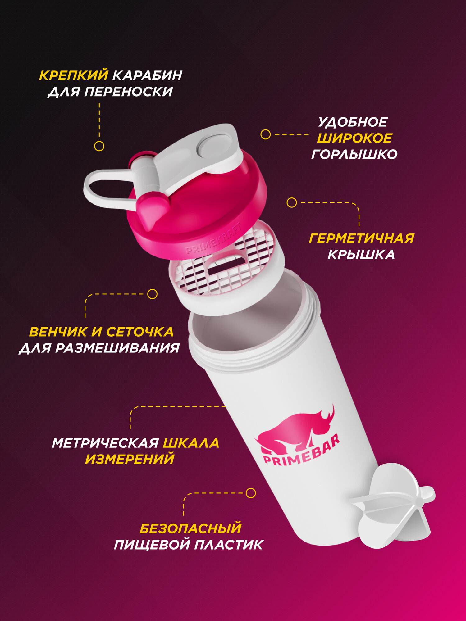 Шейкер PRIMEKRAFT 600 мл / для спортивного питания / для протеина / розовый / мерная шкала интересное: