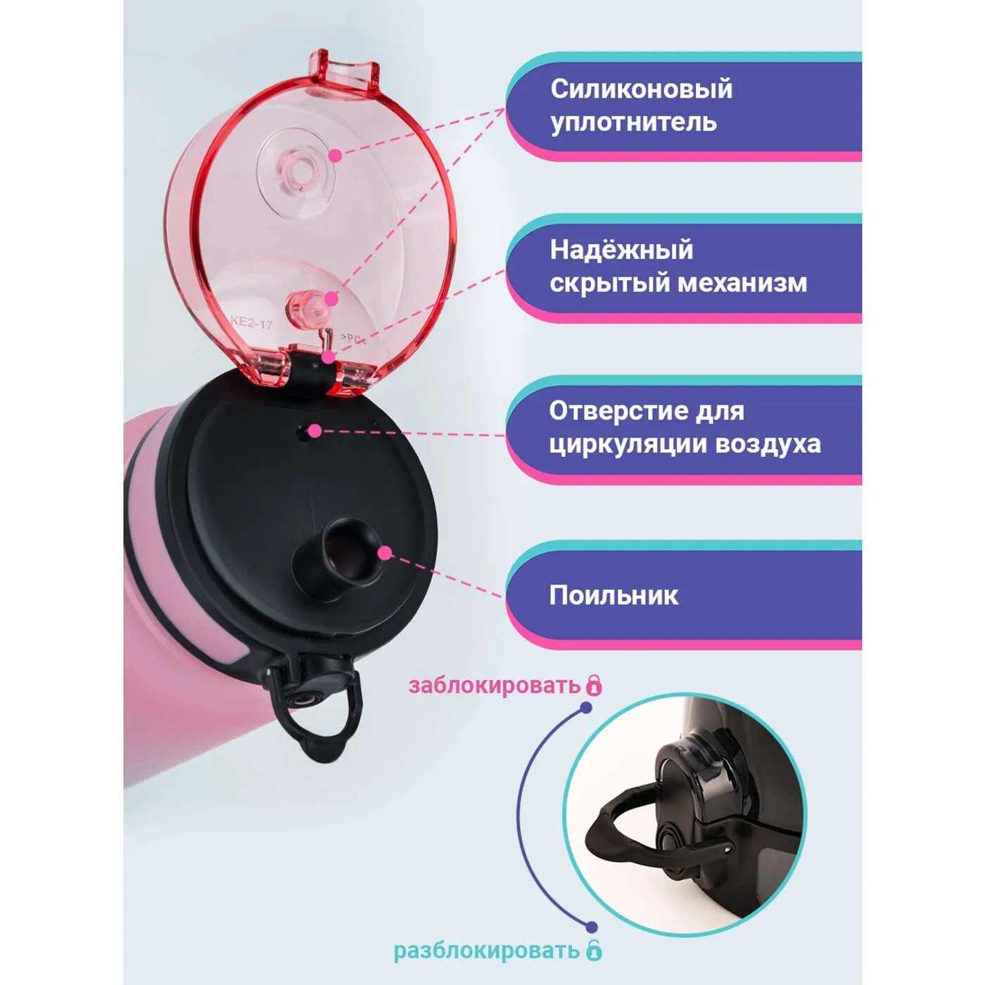 | Плюсы: | хорошее качество, удобная крышка, нечего не проливается) |
