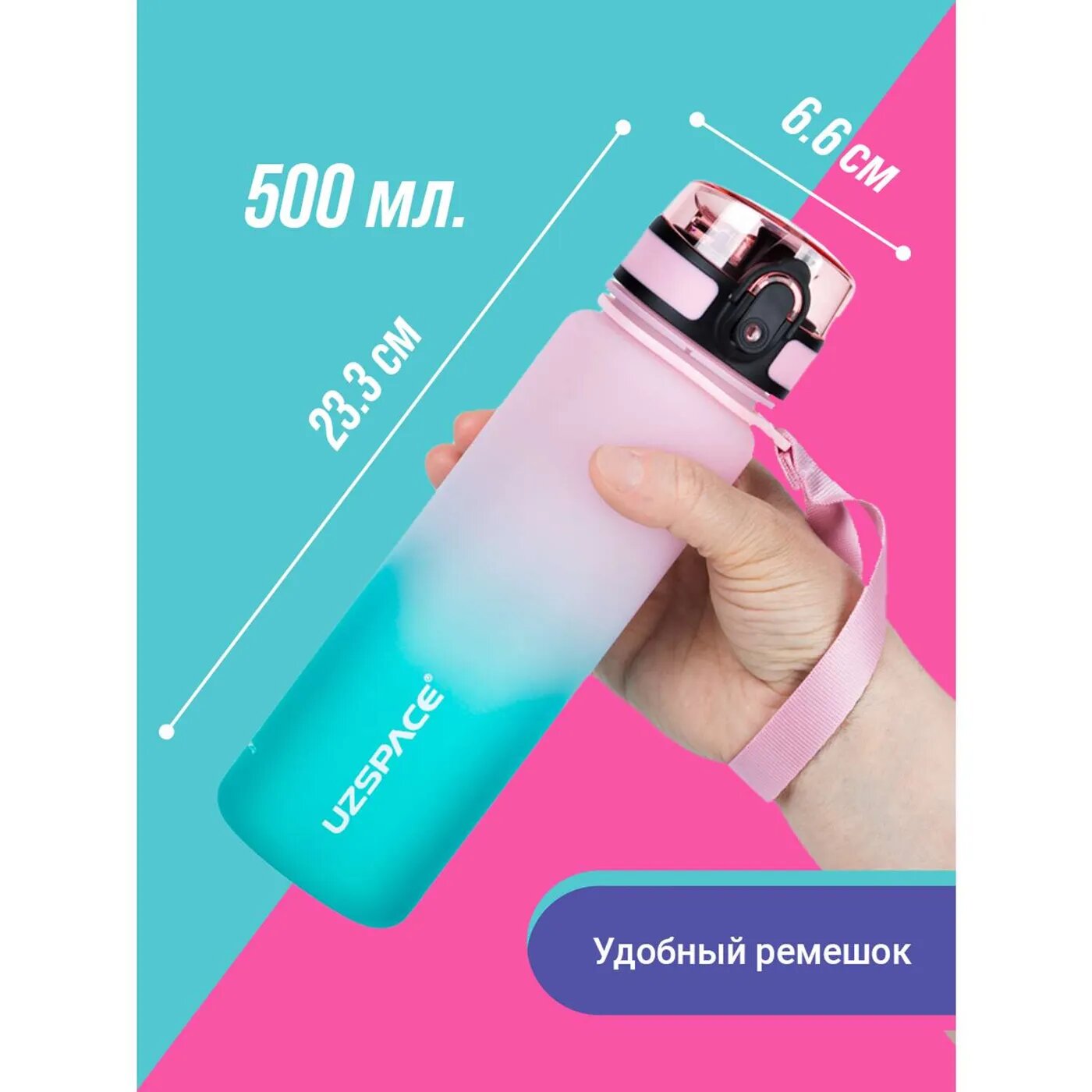 СохранитьБутылка для воды спортивная из Тритана UZSPACE 500 мл розово-голубой интересное:
