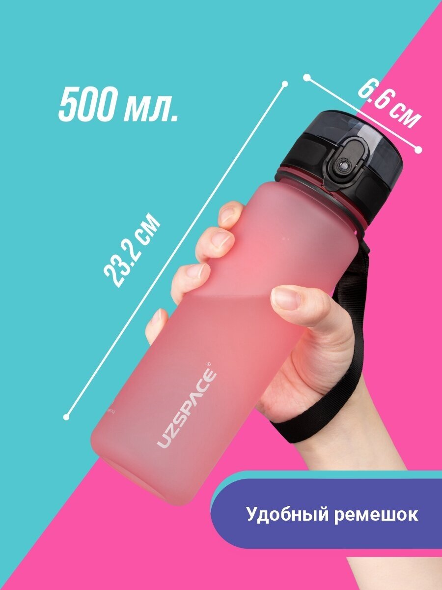 Бутылка для воды спортивная UZSPACE Colorful Frosted, 500 мл розовый