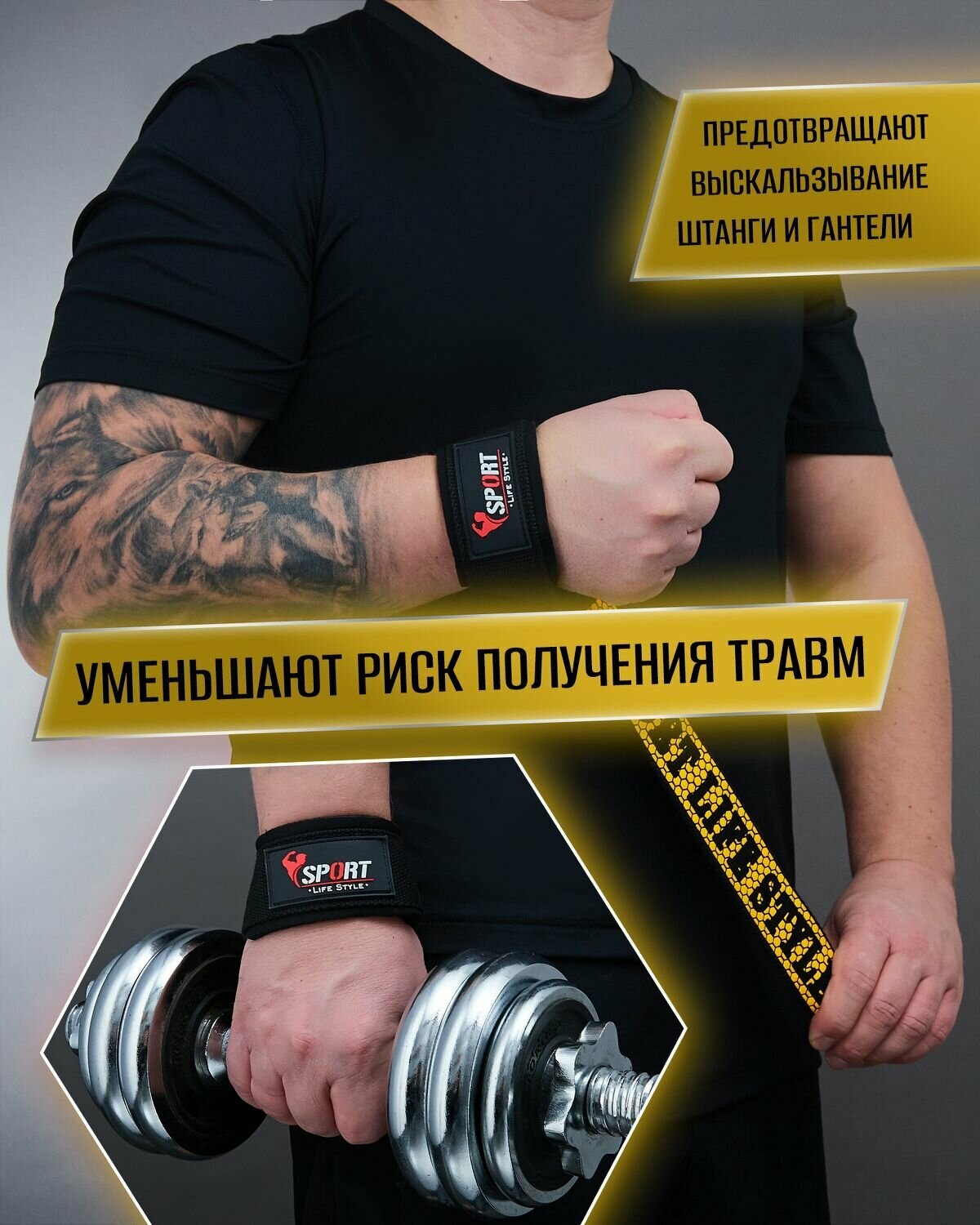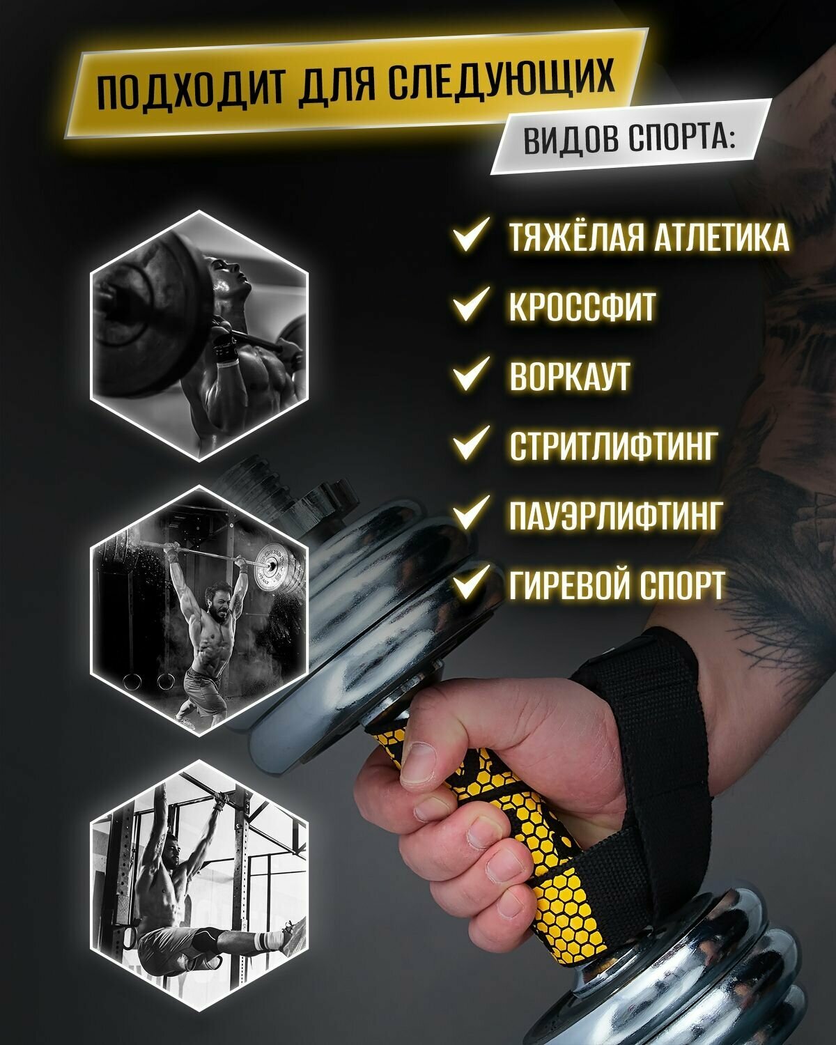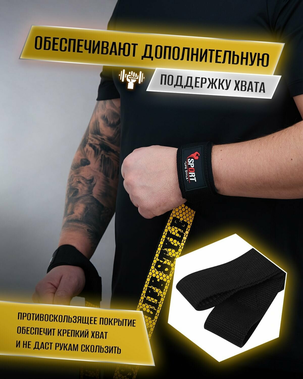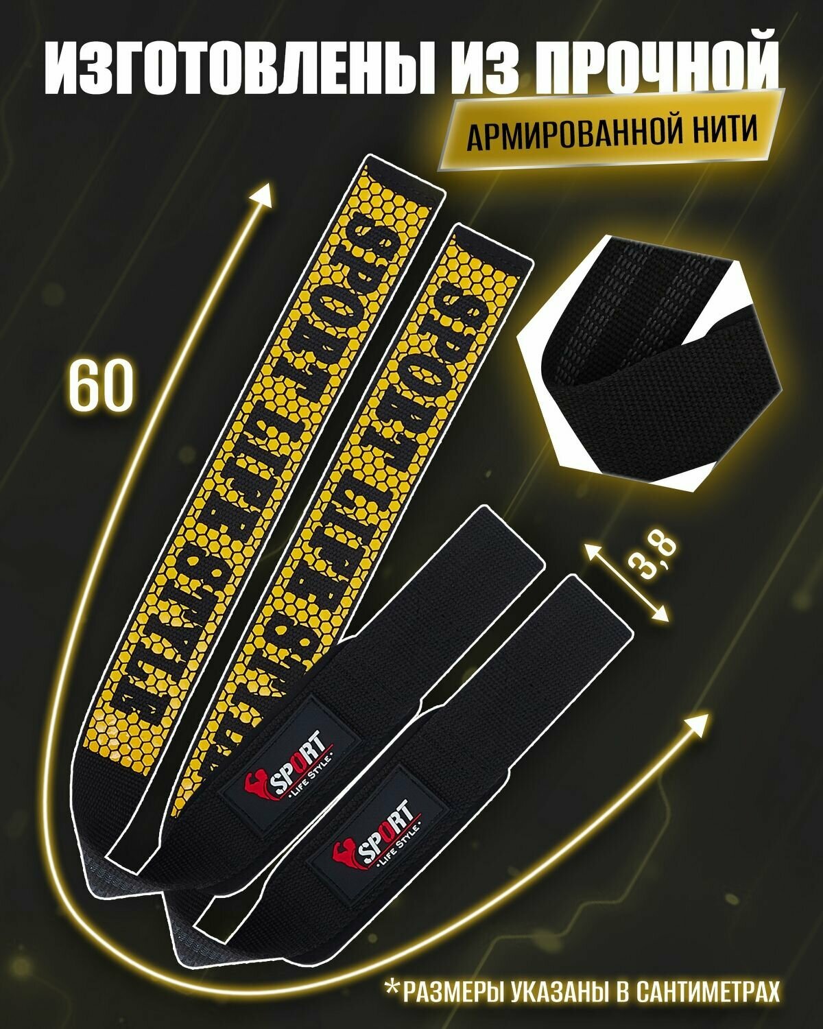 Лямки для тяги с антискользящим покрытием жёлтого цвета. SportLifeStyle. интересное: