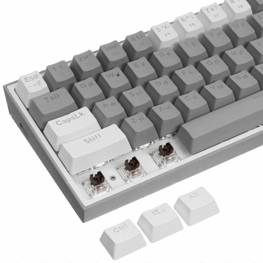 Купить Игровая клавиатура механическая Redragon Fizz Радужная тихая, серо-белая компактная (60%)