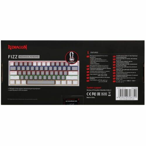 Клавиатура Defender Redragon Fizz Радужн,61 клав,тих,серо-бел механическая