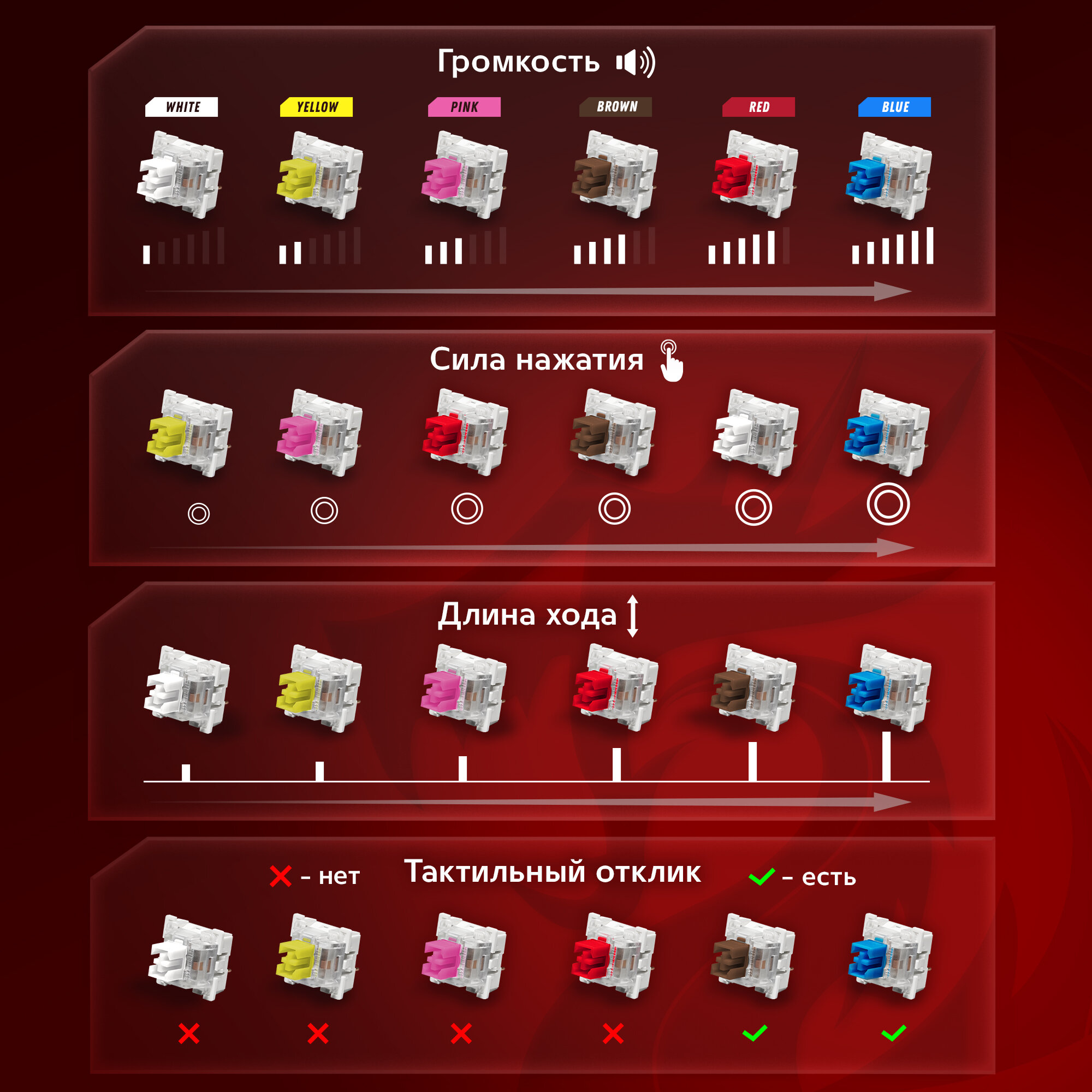 | Плюсы: | приятный звук, быстрые нажатия |