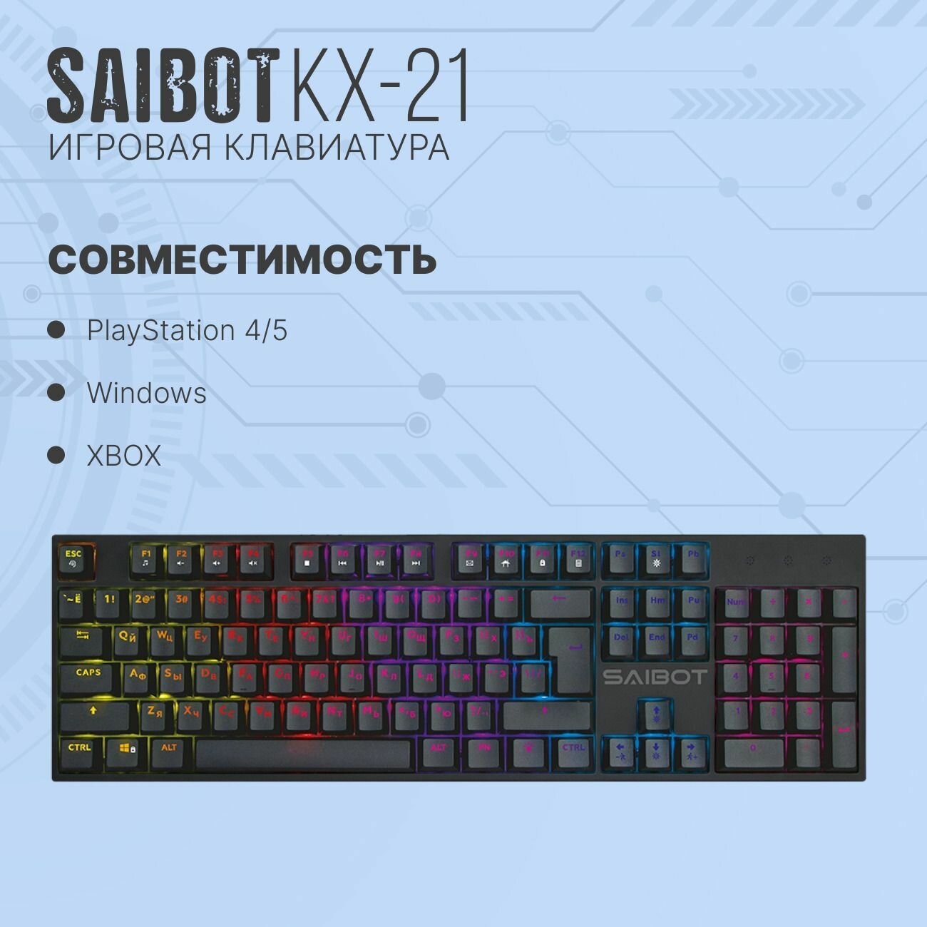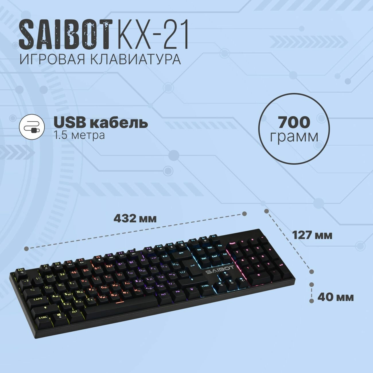 | Дополнительная информация | Серия: Saibot KX-21. Модель: TFN-GM-KW-KX-21BKR. Проводная клавиатура |