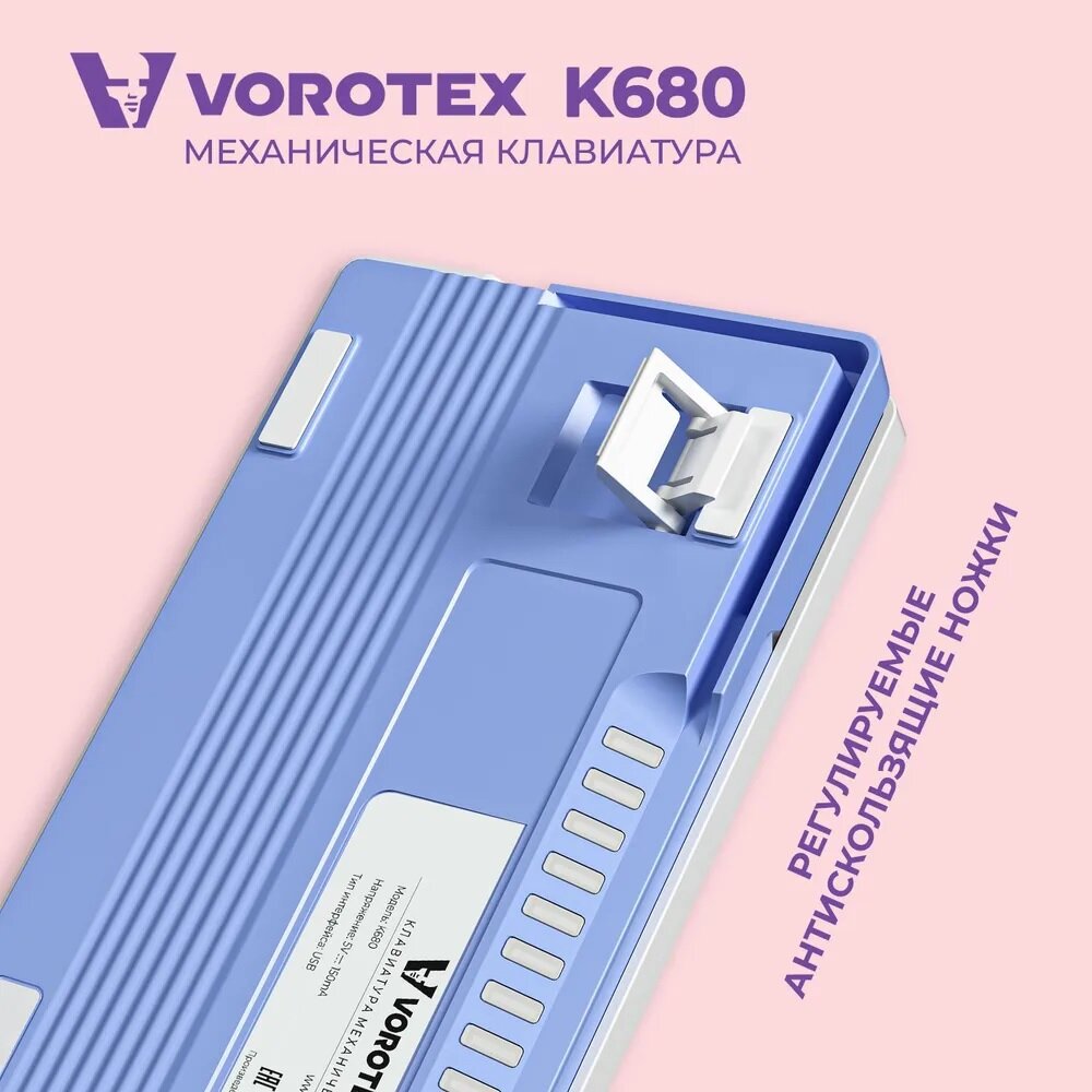 Купить Клавиатура игровая проводная VOROTEX K680 Yellow Switch, русская раскладка (Фиолетовый, белый)