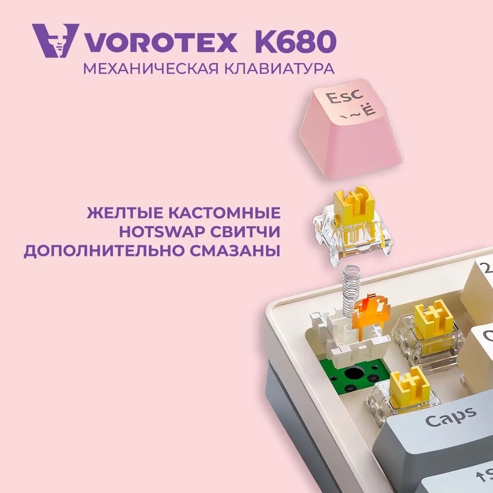 Клавиатура игровая проводная VOROTEX K680 Yellow Switch, русская раскладка (Кремовый, серый)