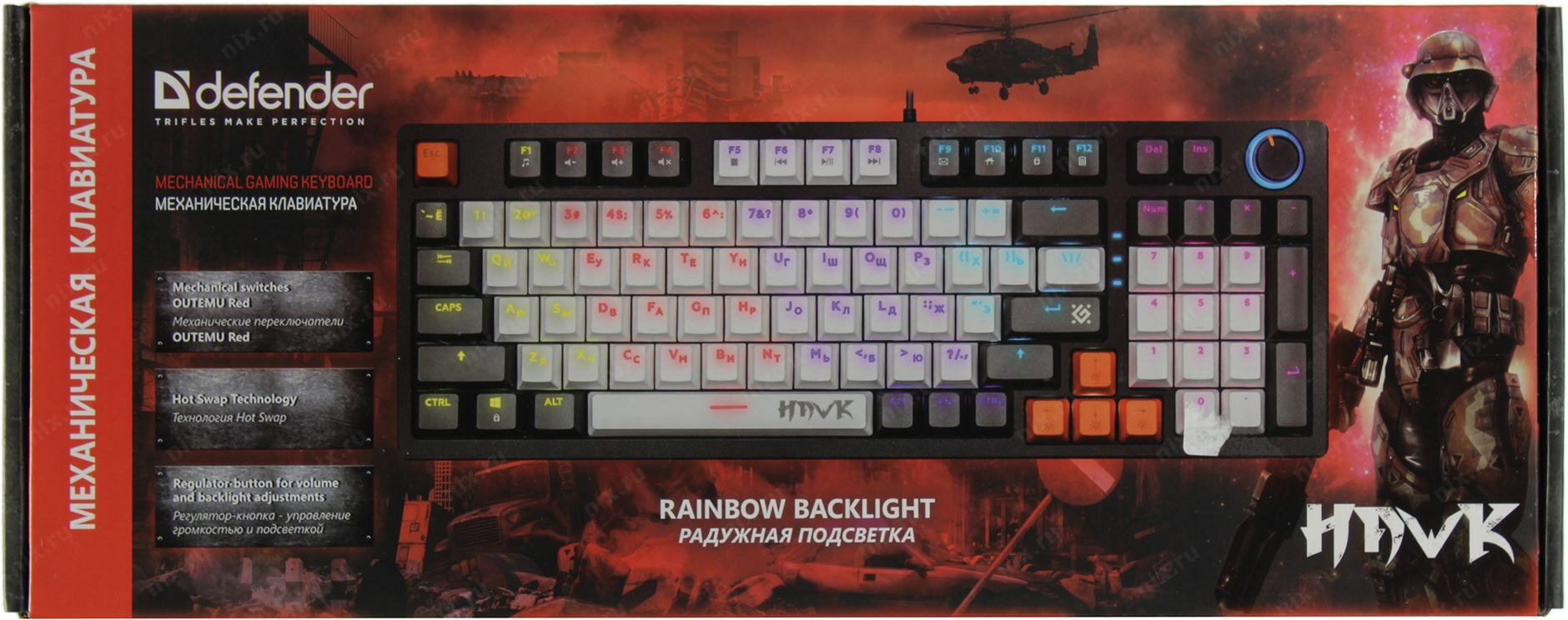Клавиатура Defender HAWK GK-418 RU (Red SW) черный/белый (45418) интересное: