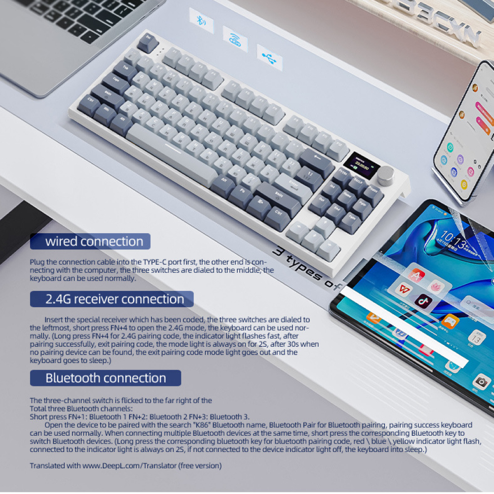 СохранитьКлавиатура механическая Attack Shark K86 Hot-Swap беспроводная Bluetooth+2.4G+проводная для компьютера ноутбука телефона игровая русская английская интересное:
