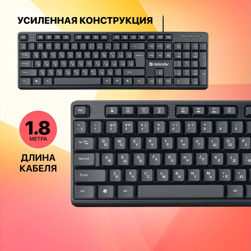 Клавиатура Defender Daily HB-162 RU,черный,104 кнопки +FN/USB/1,5 м