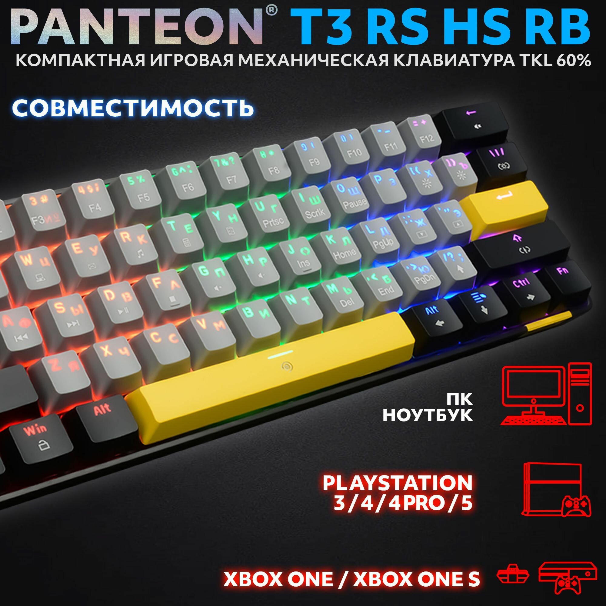 Купить PANTEON T3 RS HS RB Grey-Black (38) Механическая клавиатура (TKL 60%, подсветка LED RAINBOW, Jixian Red, 61 кл., HotSwap, USB),цвет: серый-черный (38)
