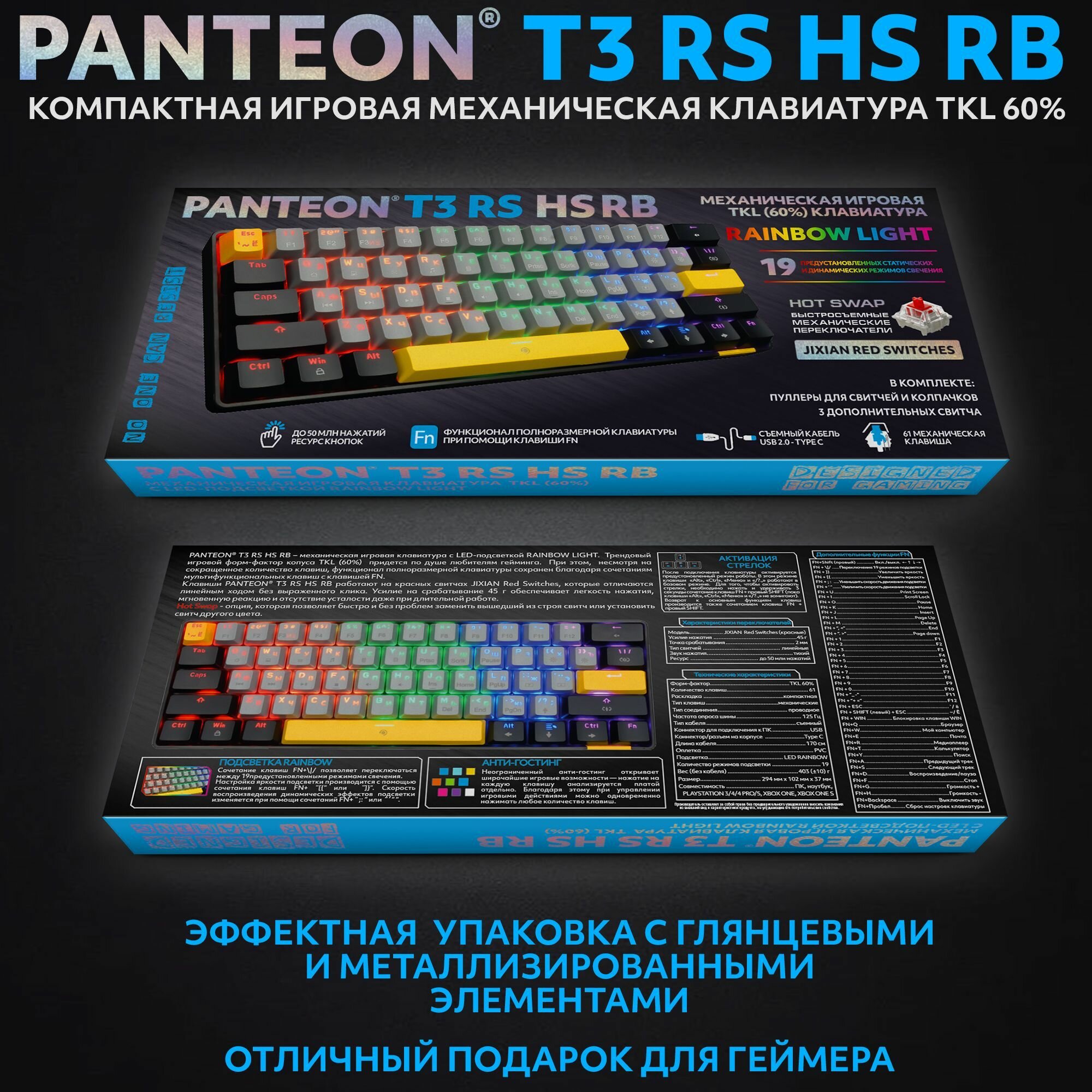 PANTEON T3 RS HS RB Grey-Black (38) Механическая клавиатура (TKL 60%, подсветка LED RAINBOW, Jixian Red, 61 кл, HotSwap, USB), цвет: серый-черный (38)