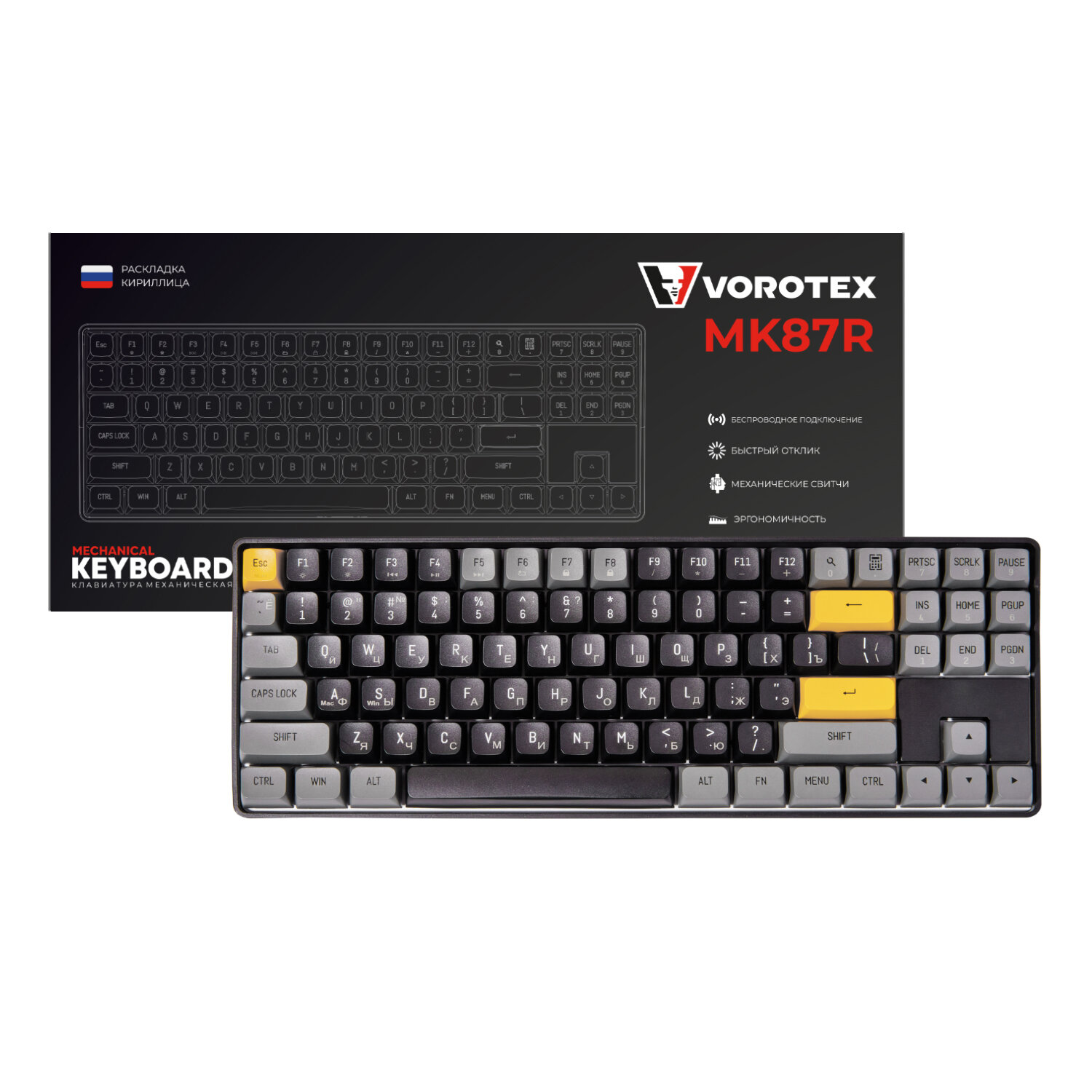 Купить Клавиатура беспроводная VOROTEX MK87R Yellow Switch, коричневый сахар