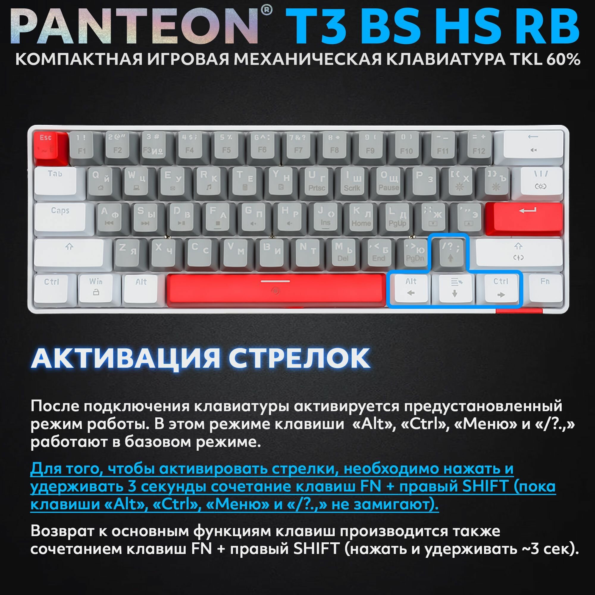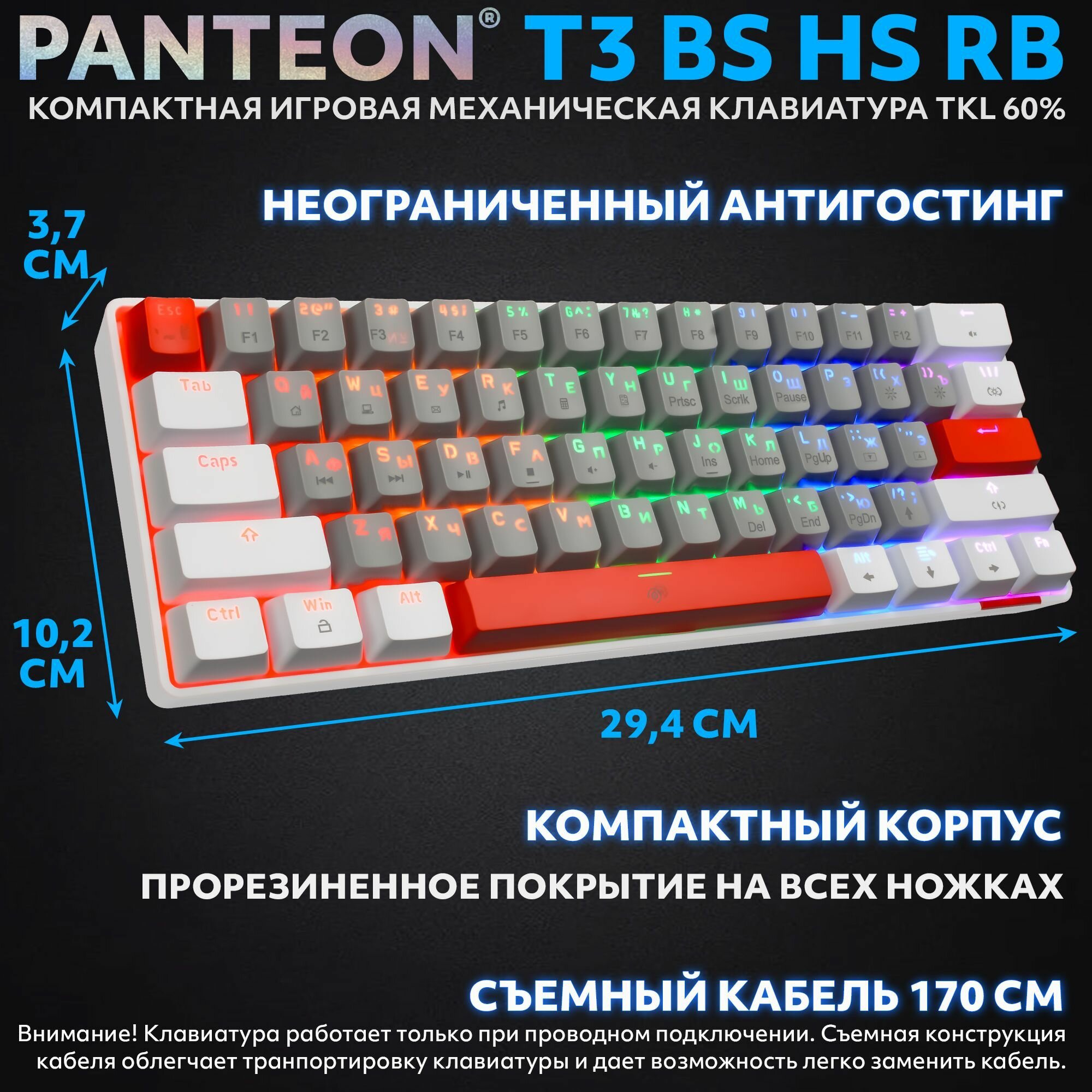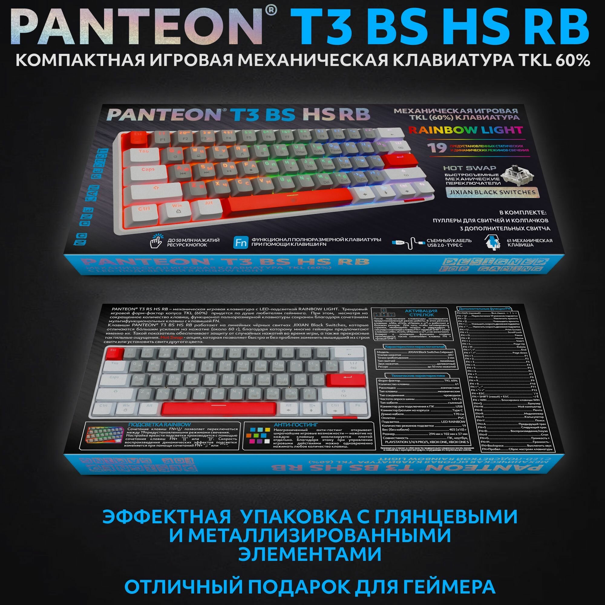 PANTEON T3 RS HS RB White-Grey (37) Механическая клавиатура (TKL 60%, подсветка LED RAINBOW, Jixian Red, 61 кл., HotSwap, USB),цвет: белый-серый (37)